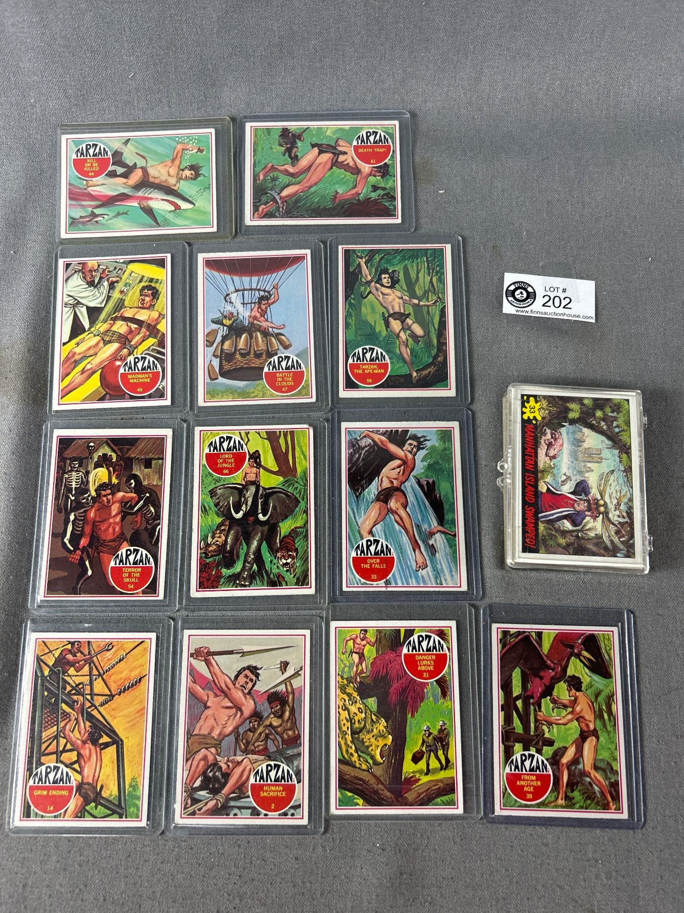 Vintage Collector Cards - 1966 Banner Prod. Inc "Tarzan" In Card Protectors & 1988 Topps "Dinosaurs Attack" In Card Holder