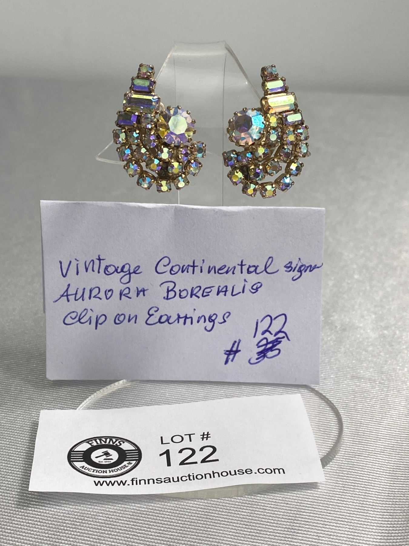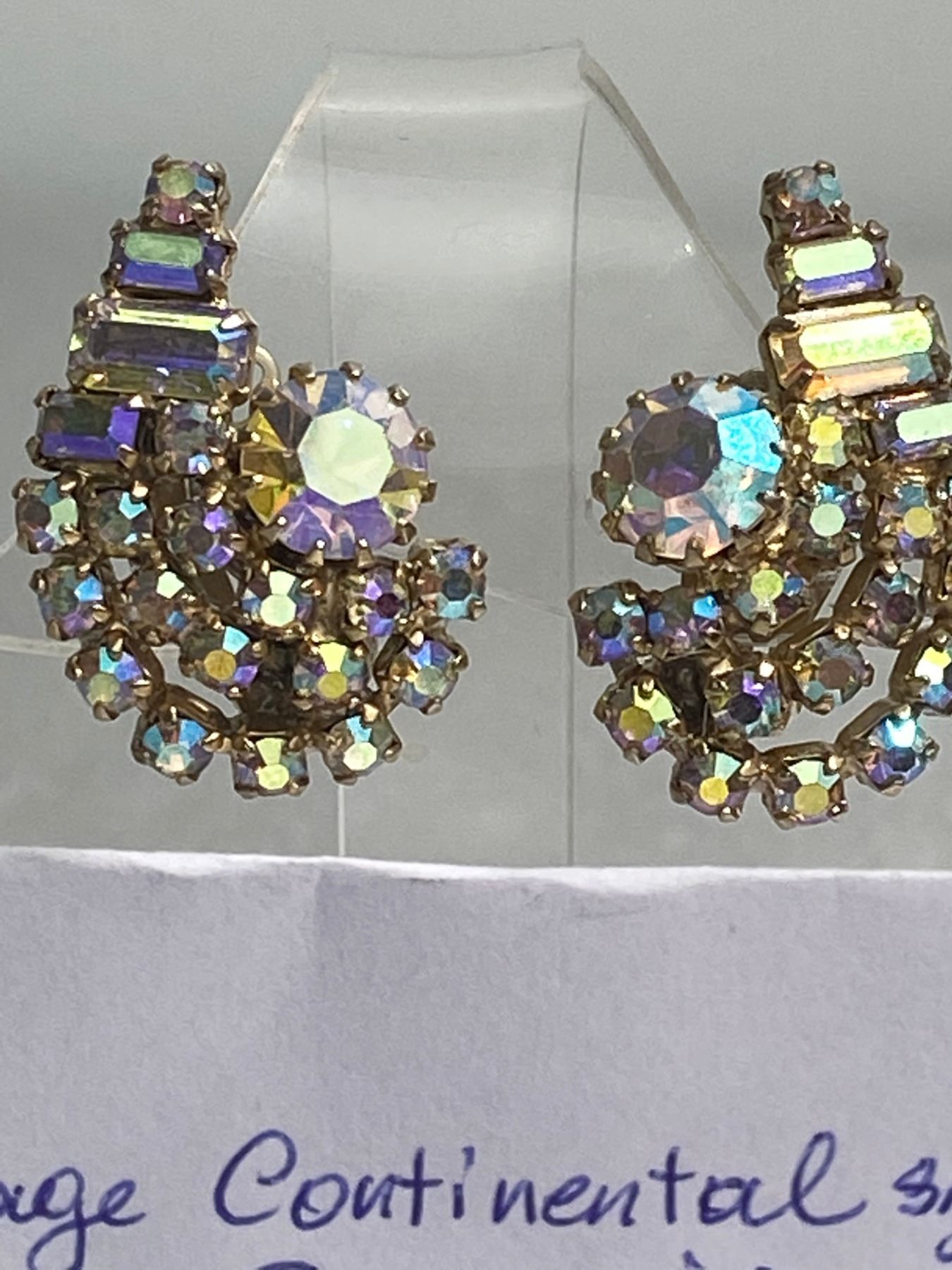 Vintage Continental Sign Aurora Borealis Clip on Earrings