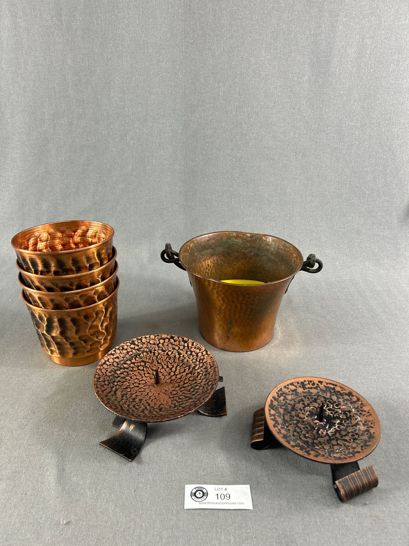 Vintage Copperware - Bucket, Candle Holders, Pots