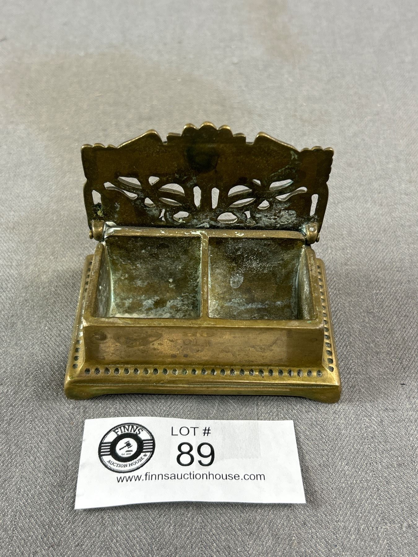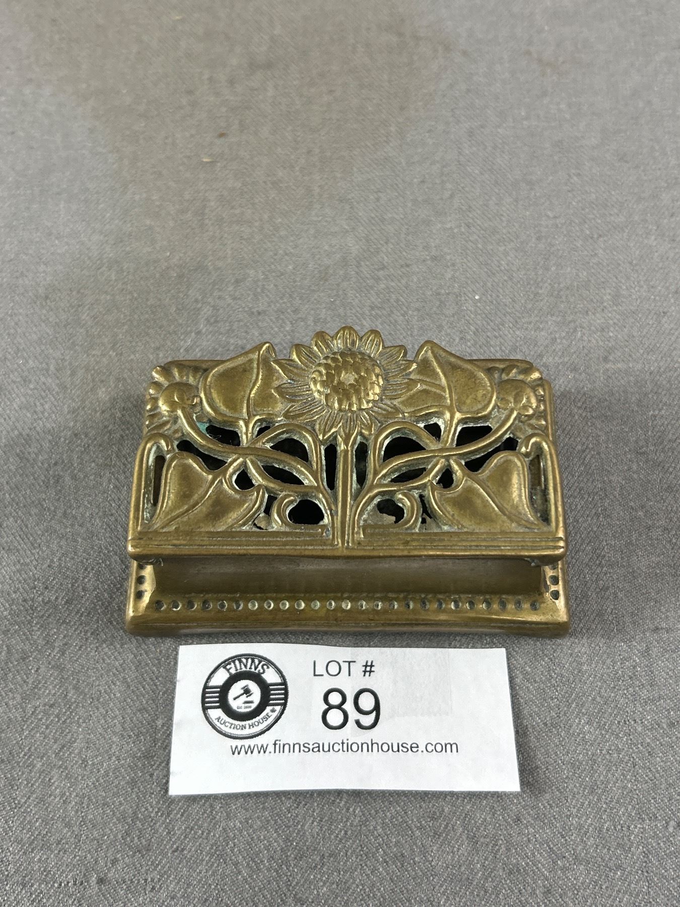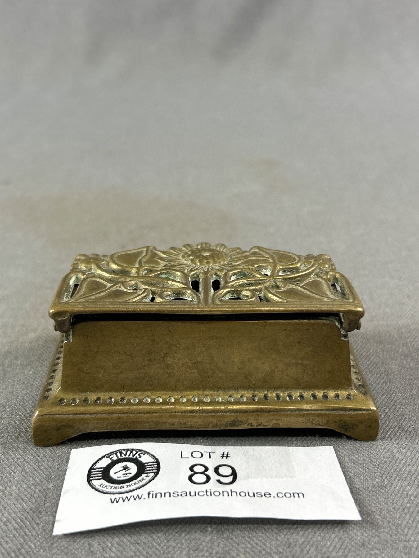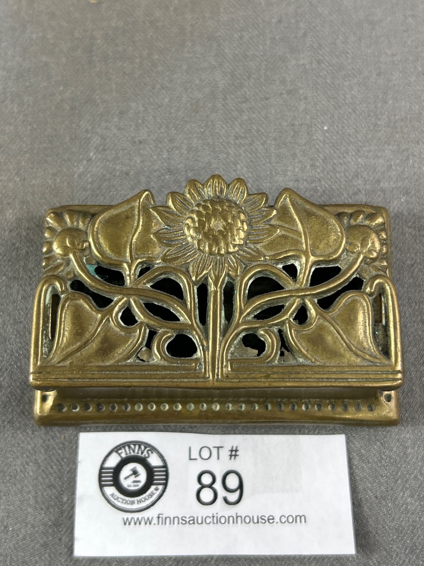 Vintage Crowning Touch Brass Desktop Stamp Holder Box Sunflower