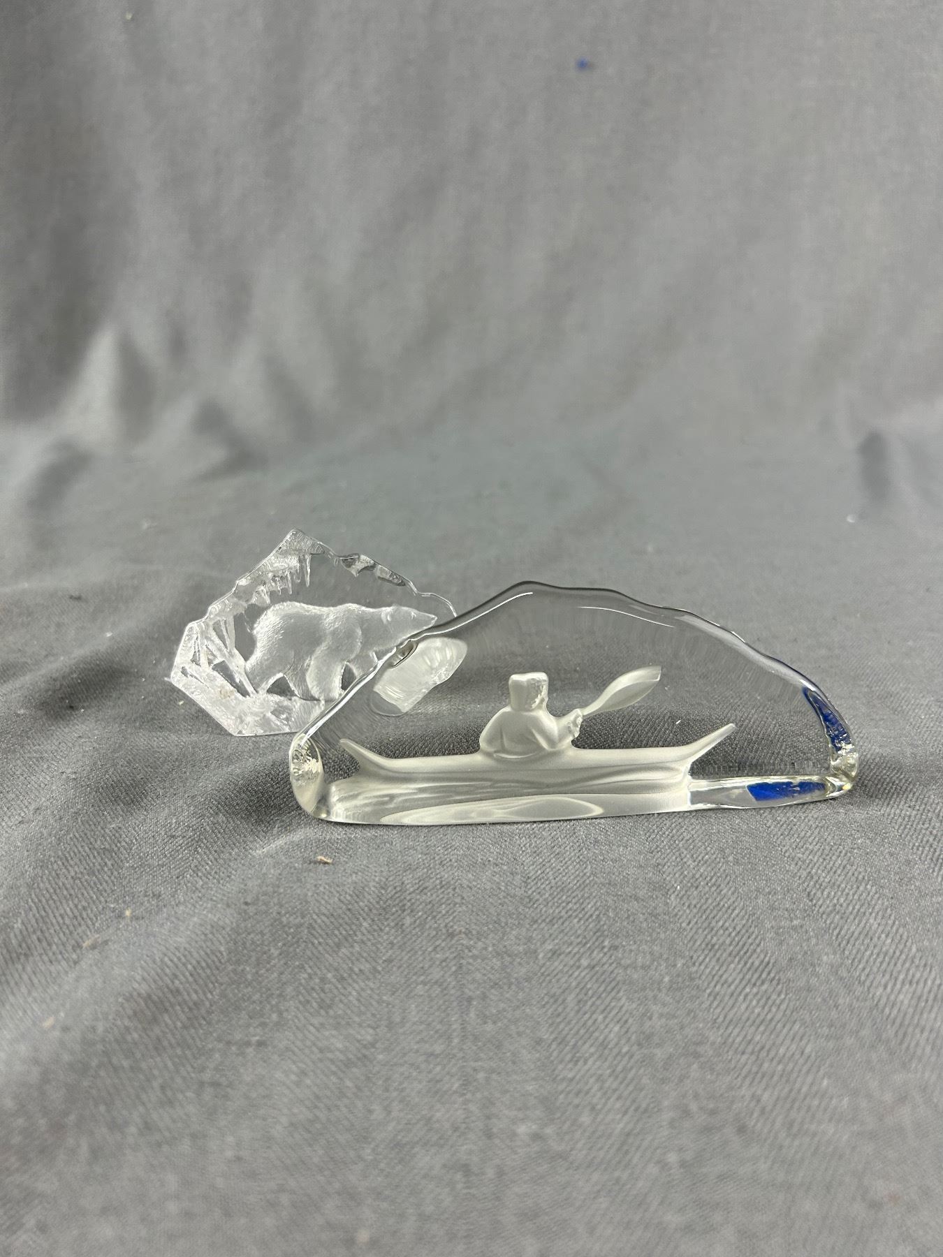 Vintage Crystal Sculptures- Polar Bear is Signed and Inuit Canoeist by Tilley Canada