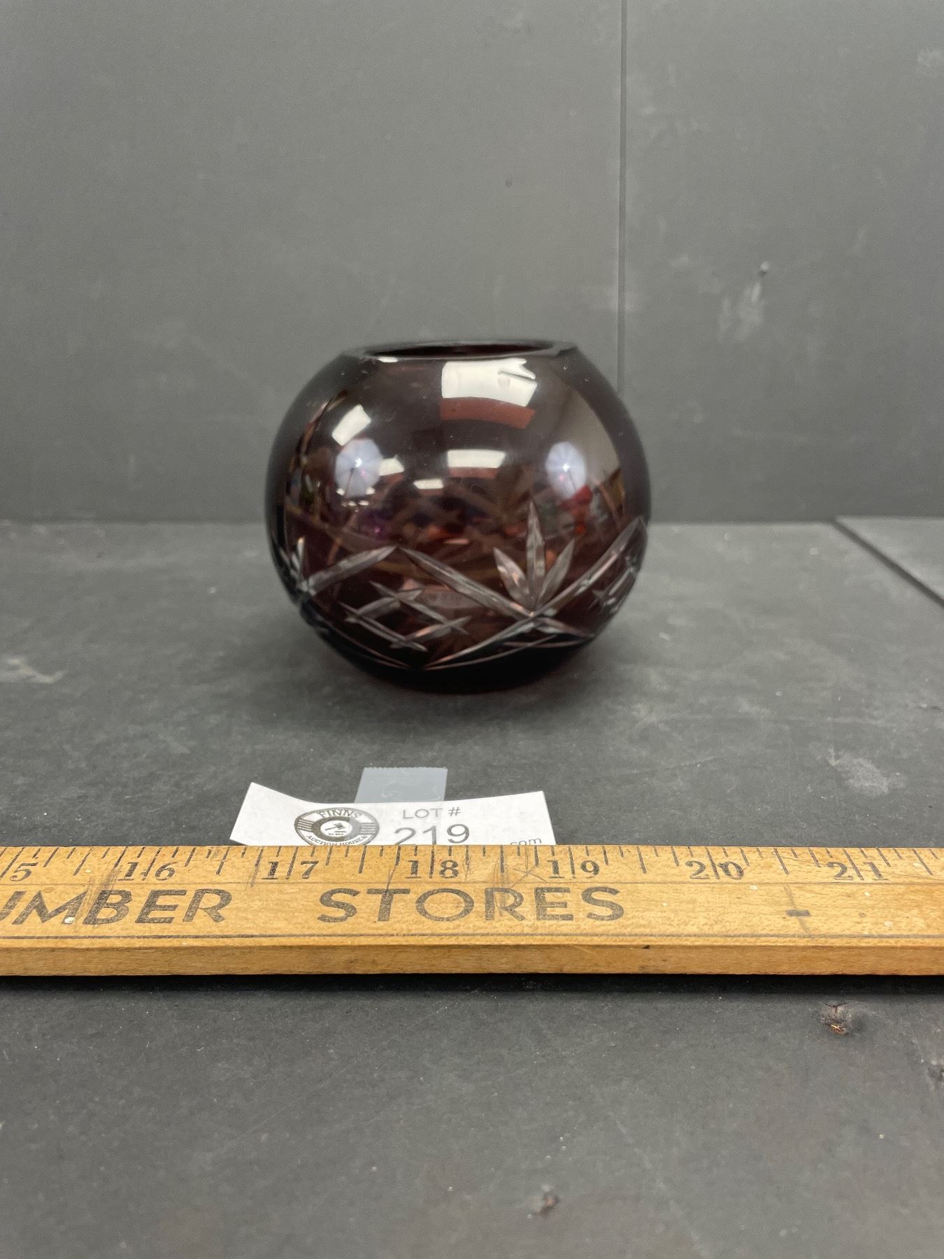 Vintage Czech Bohemian Amethyst Cut To Clear Rose Bowl Vase Or Votive Holder