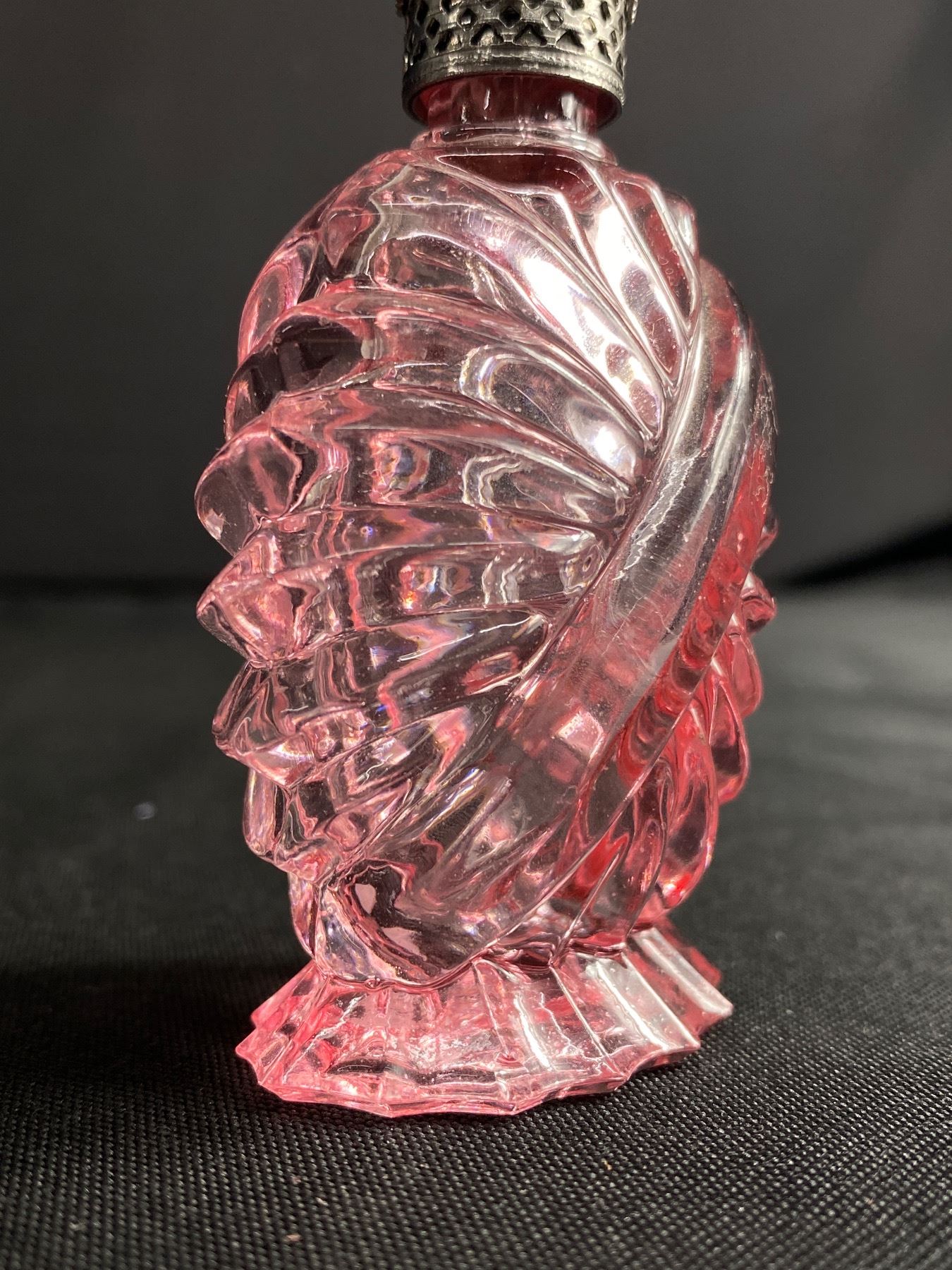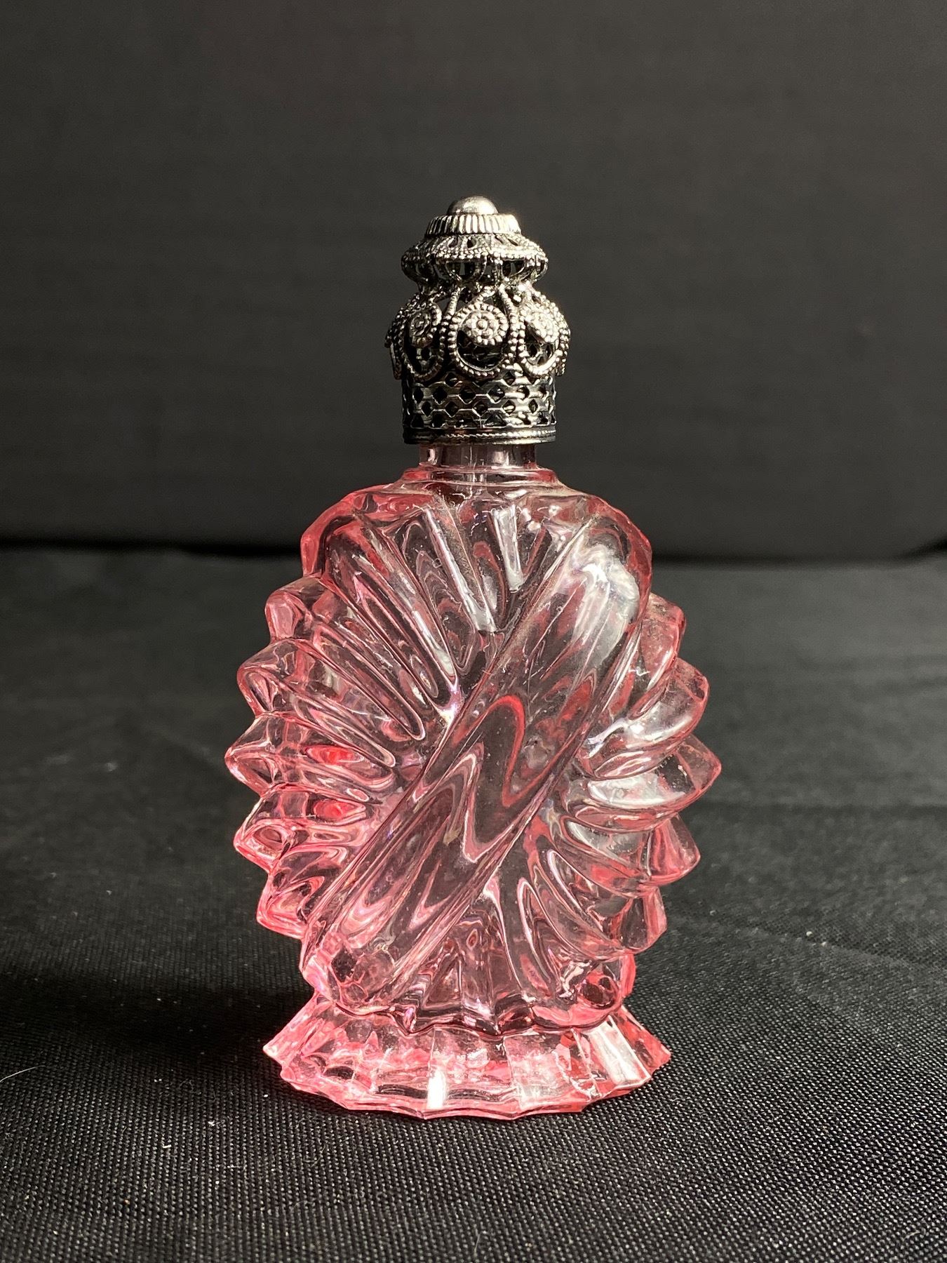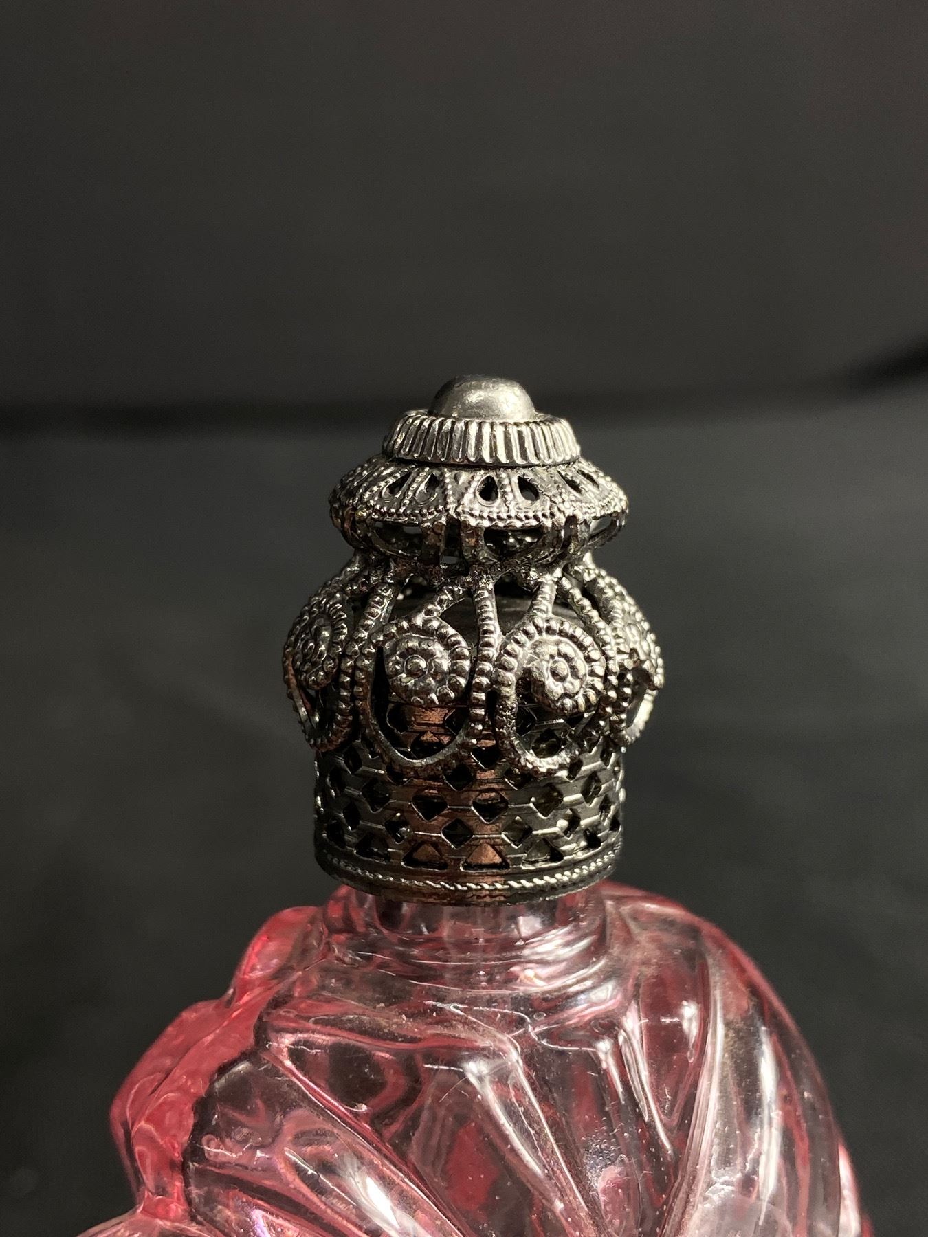 Vintage Czech Perfume Bottle with Ornate Silvertone Lid