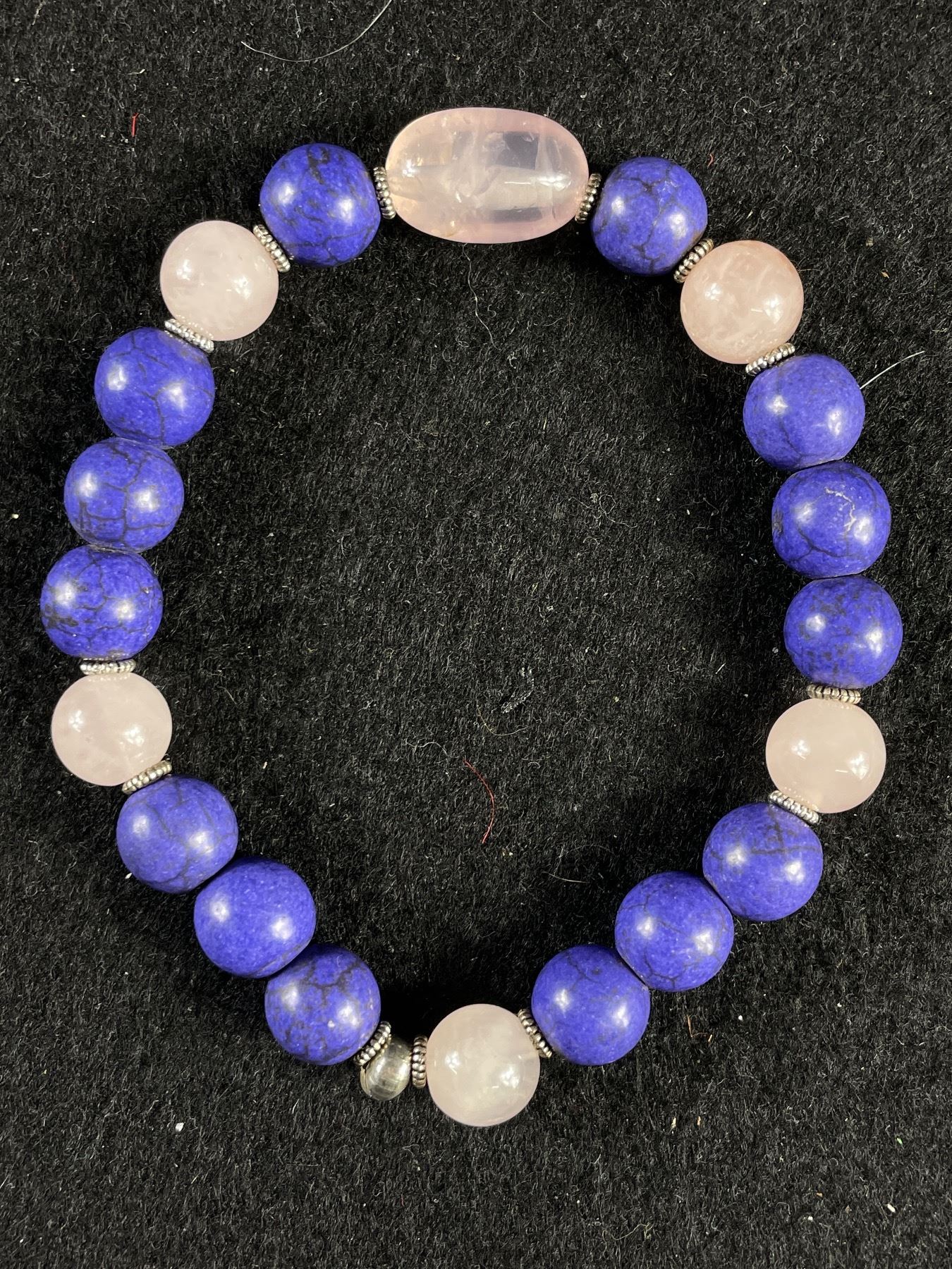 Vintage Dark Purple Amethyst or Jade and Rose Quartz Beads Bracelet