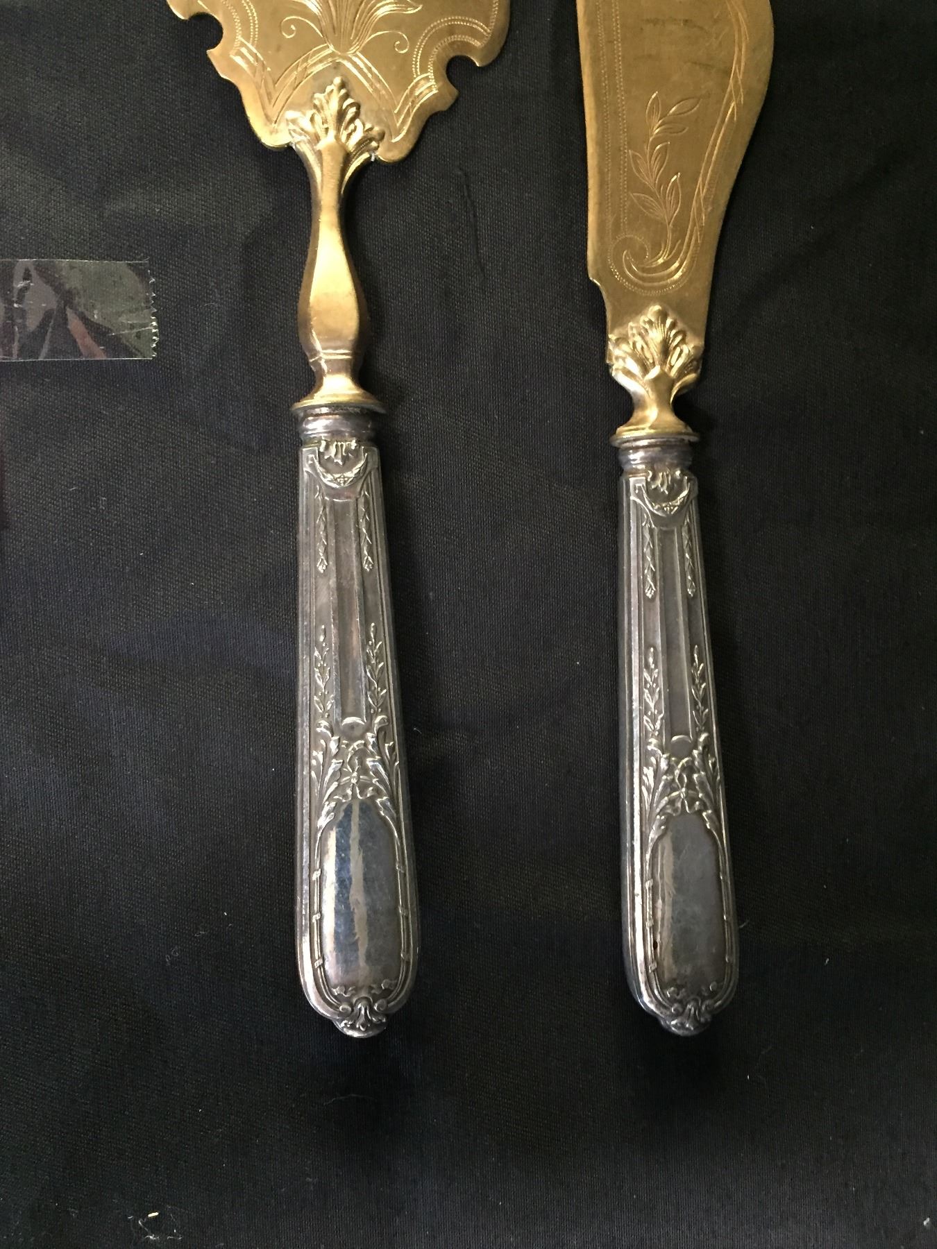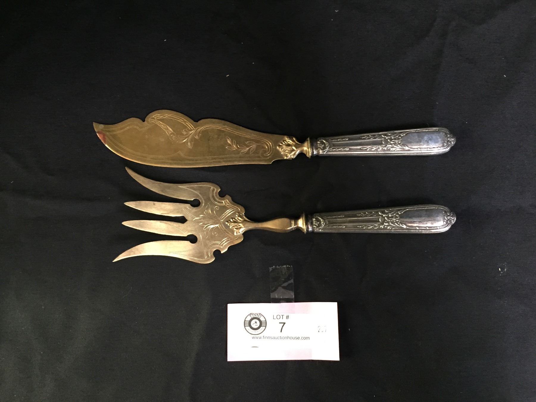 Vintage Decorative Knife and Fork Serving Pieces .800 Silver Handles total weight 236 grams