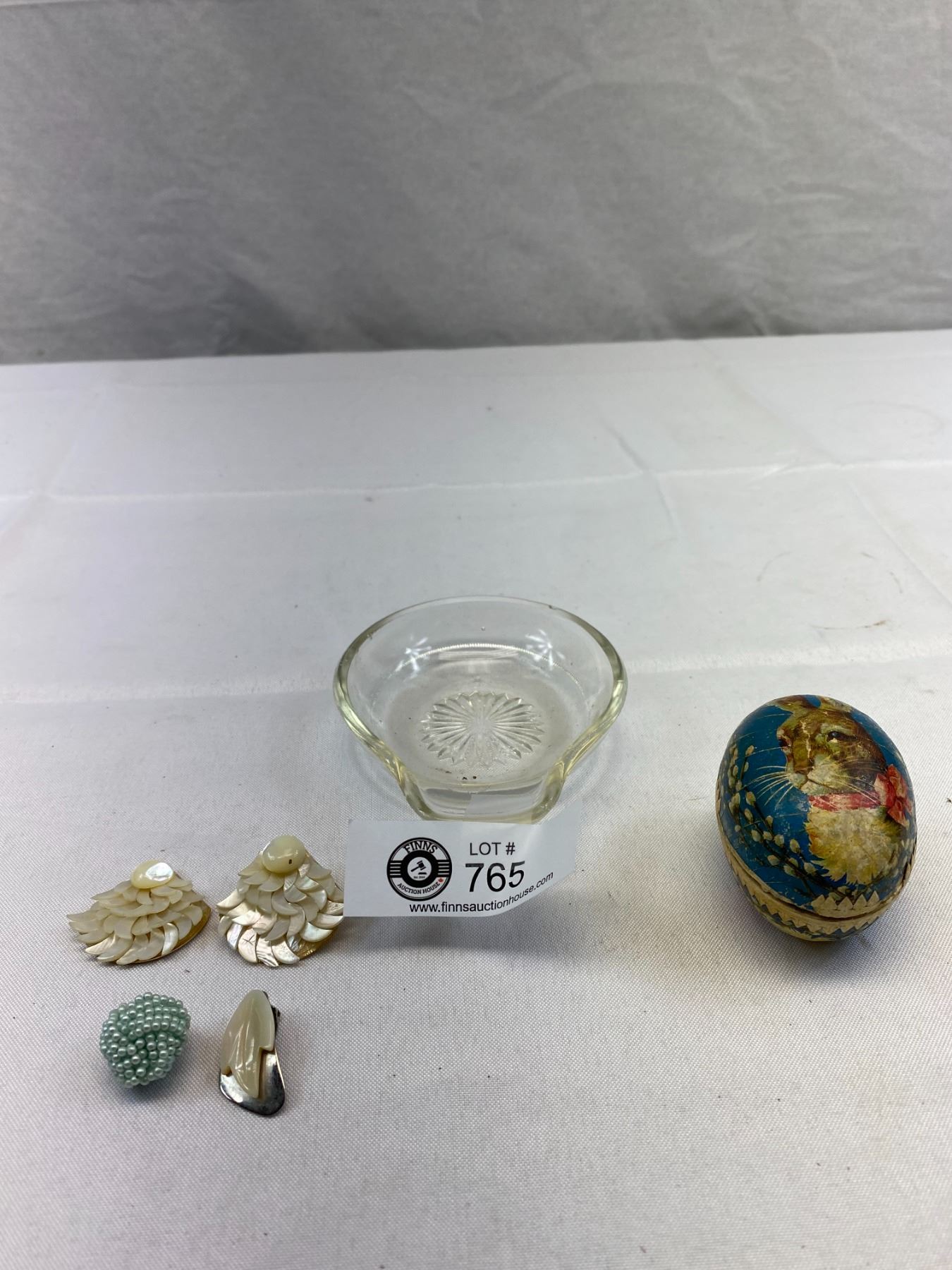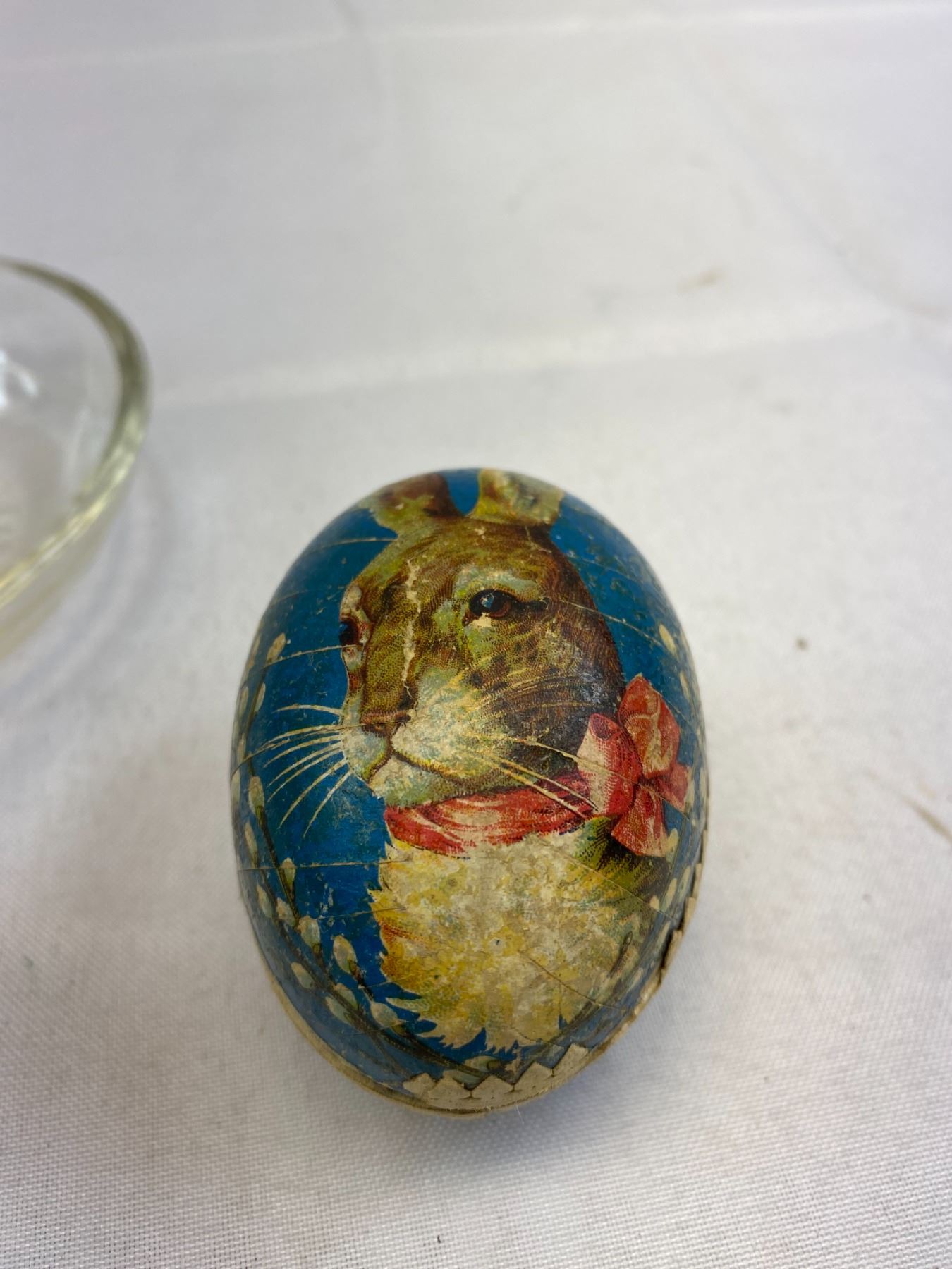 Vintage Depression Glass Spoon Rest Plus 1920's Paper Mache German Easter Egg With Contents