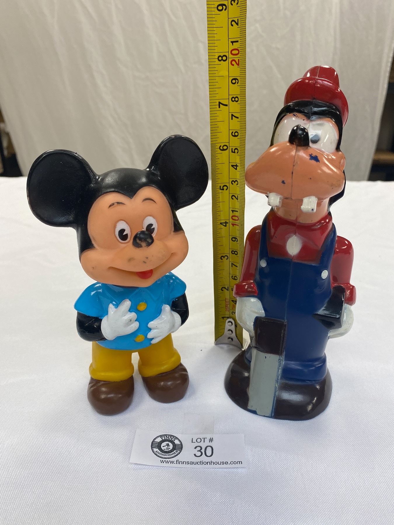 Vintage Disney Figures - Mickey Mouse, Soft Plastic and Squeaks, Made in Hong Kong and Pluto - Hard Plastic, Made in Hong Kong