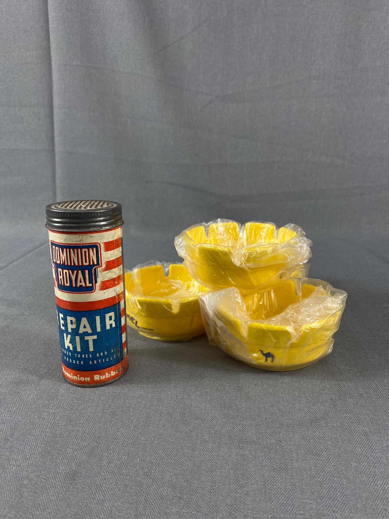 Vintage Dominion Royal Repair Kit (Empty) & 4 Camel Ashtrays