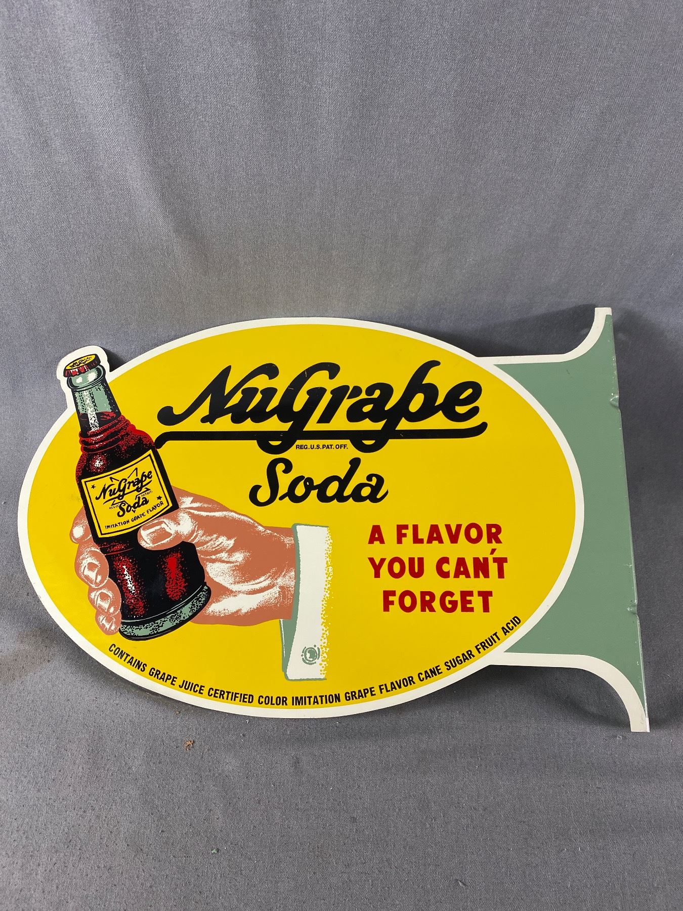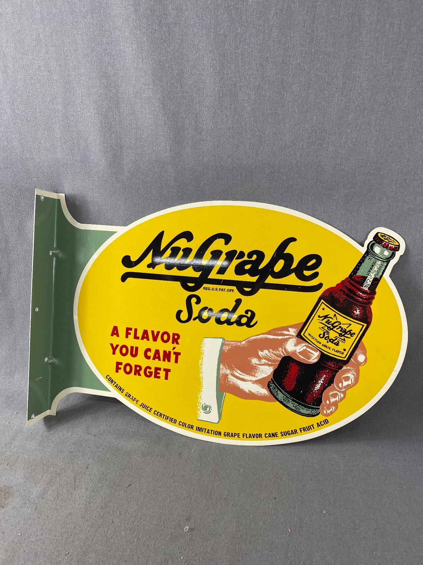 Vintage Double-Sided Metal "NuGrape Soda" Sign. Approx. 20" x 13.75"