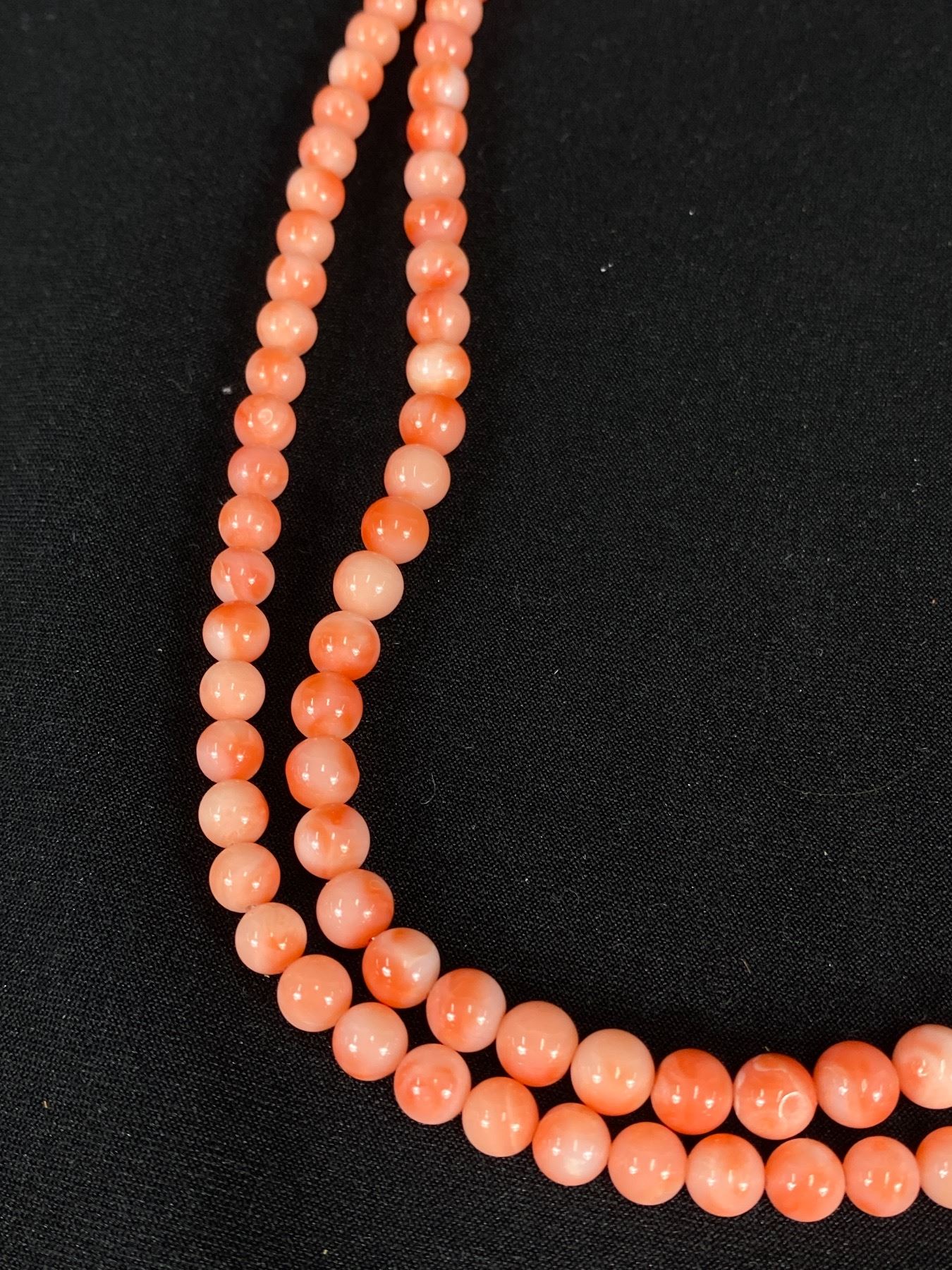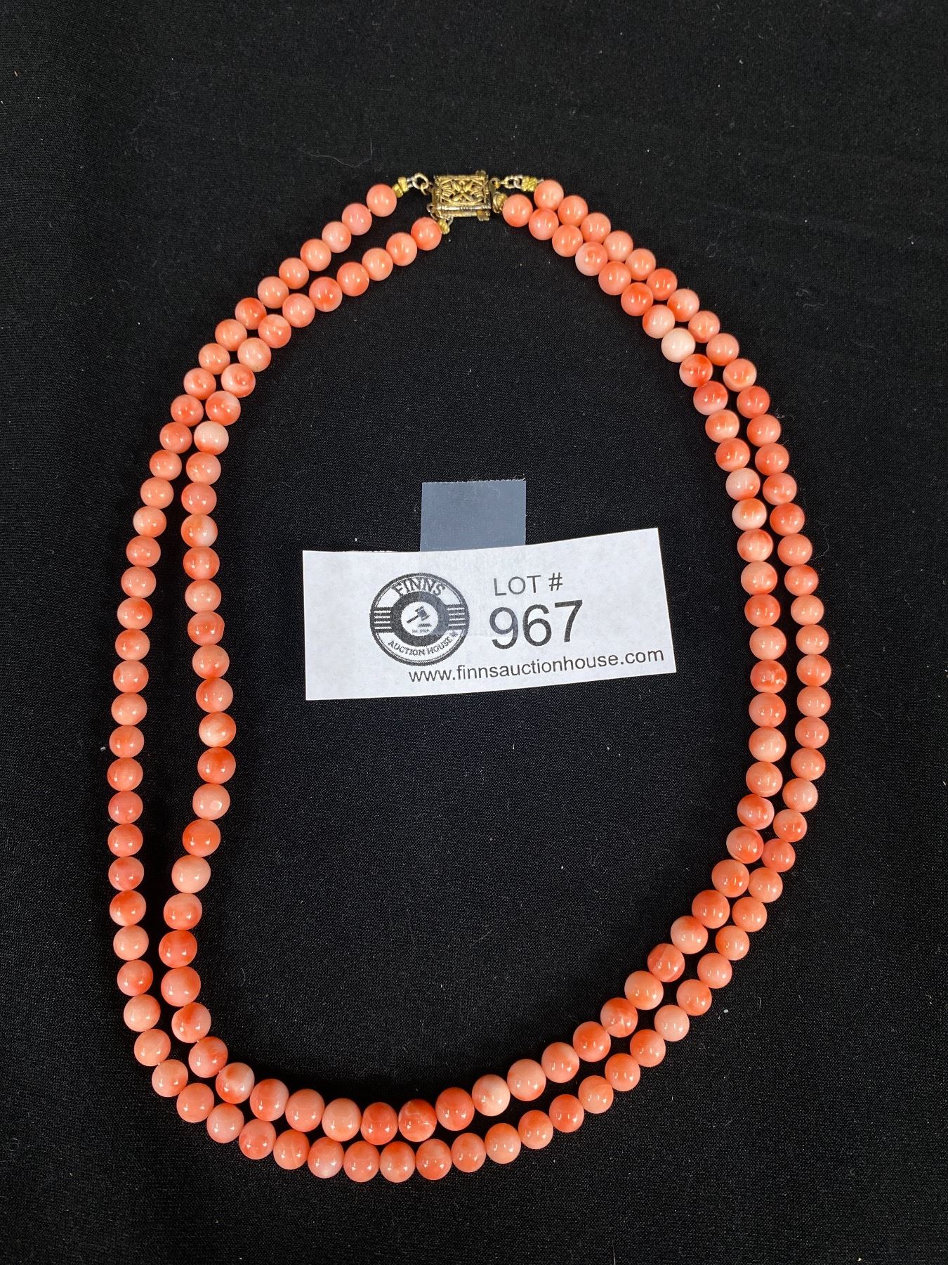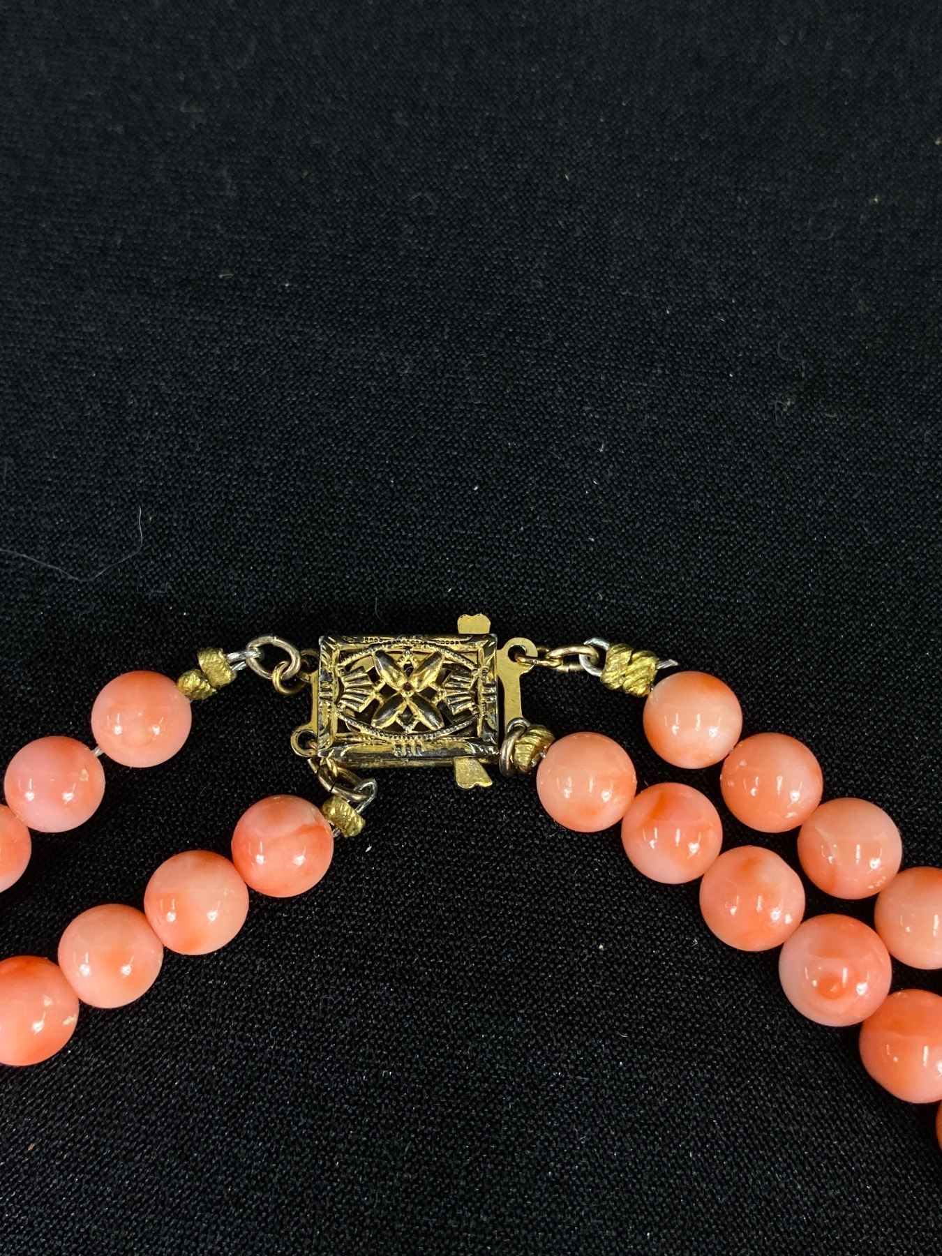 Vintage Double Strand Dark Pink Coral Beads Necklace Original Sterling Silver Filigree Clasp. 16" L