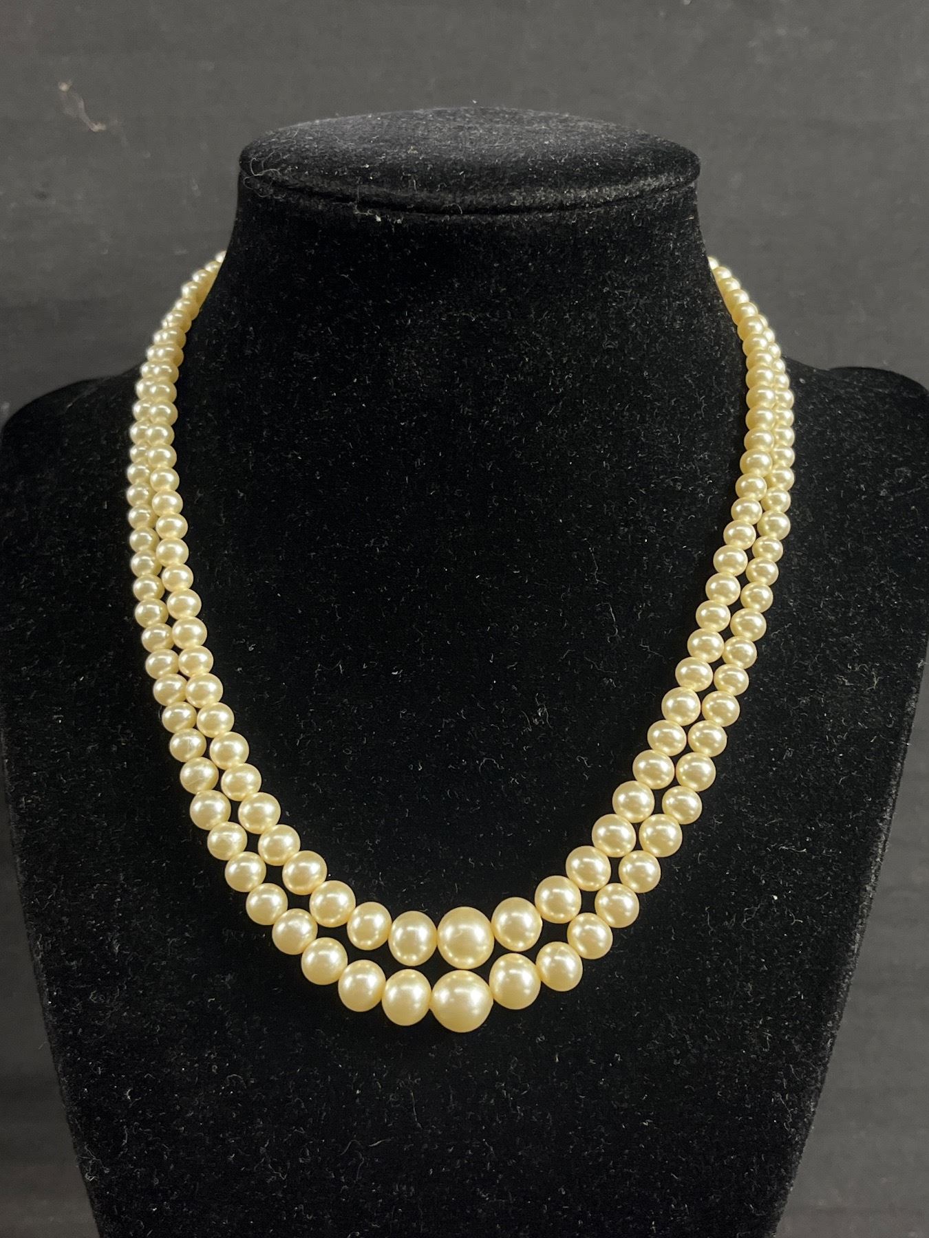 Vintage Double Strand Graduated Pearls Necklace Original Clasp