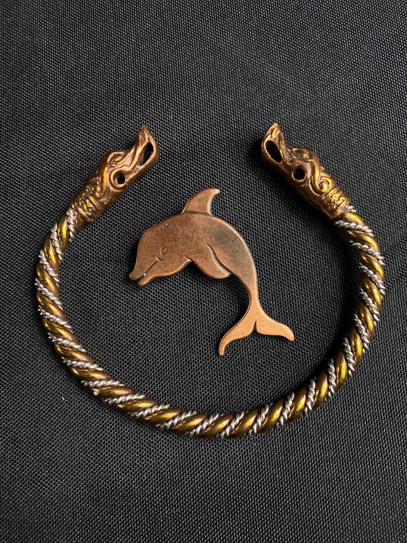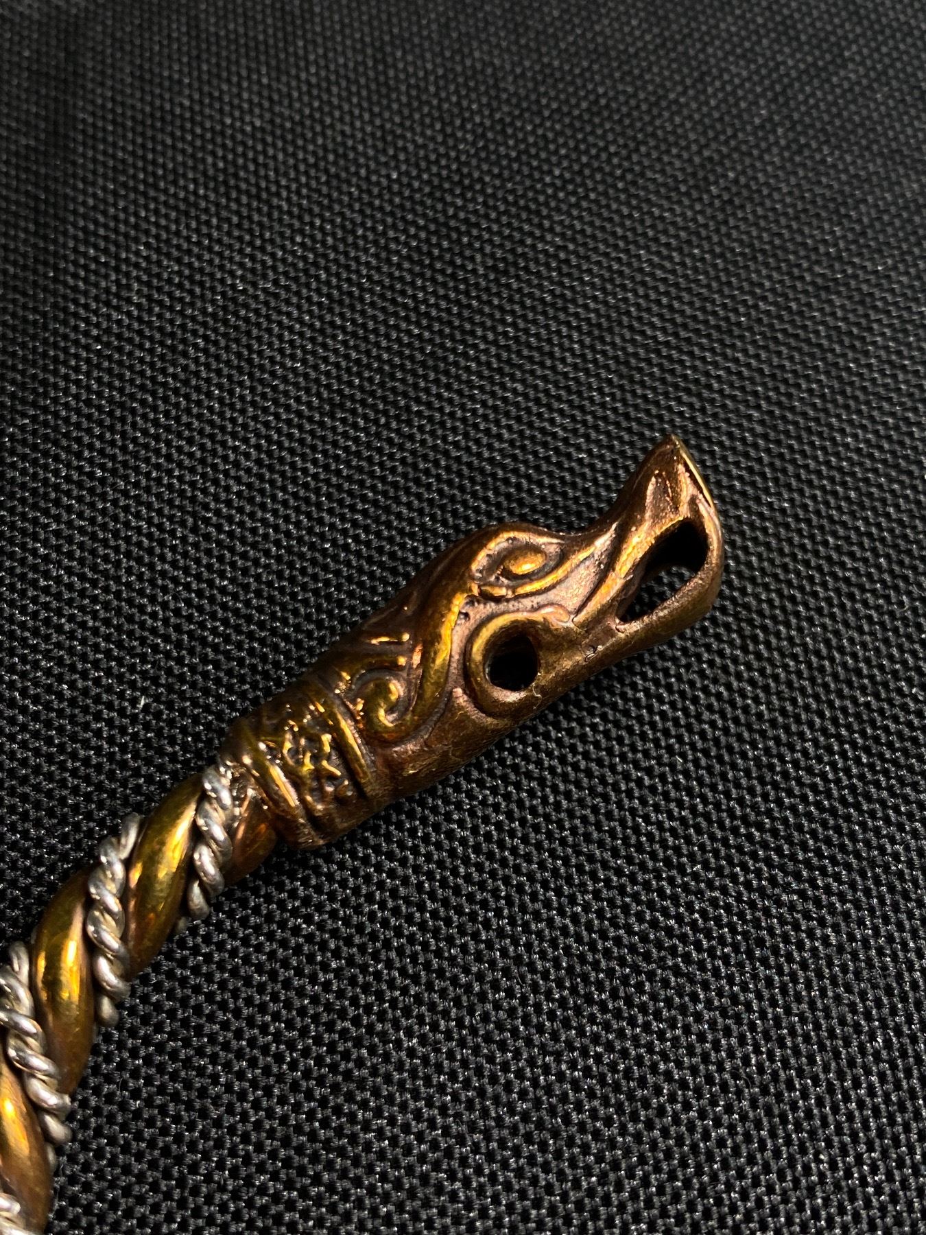 Vintage Dragon Head Metal Bangle and Copper Brooch