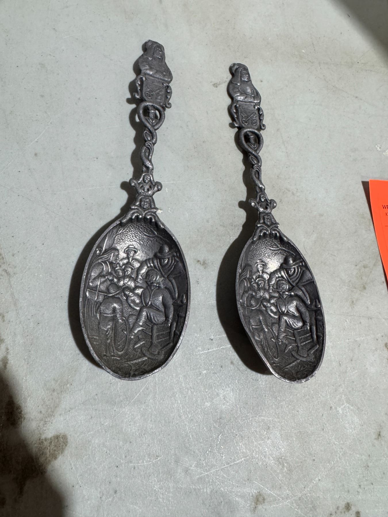 Vintage Dutch pewter spoons Jan Steen "de Tandmeeater"