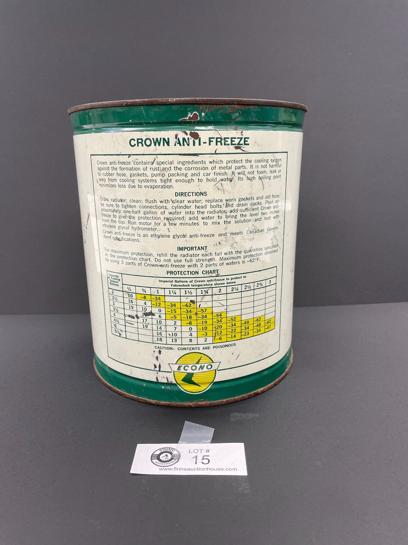 Vintage Econo Crown 1 Gallon Anti Freeze Tin No Lid Good Graphics