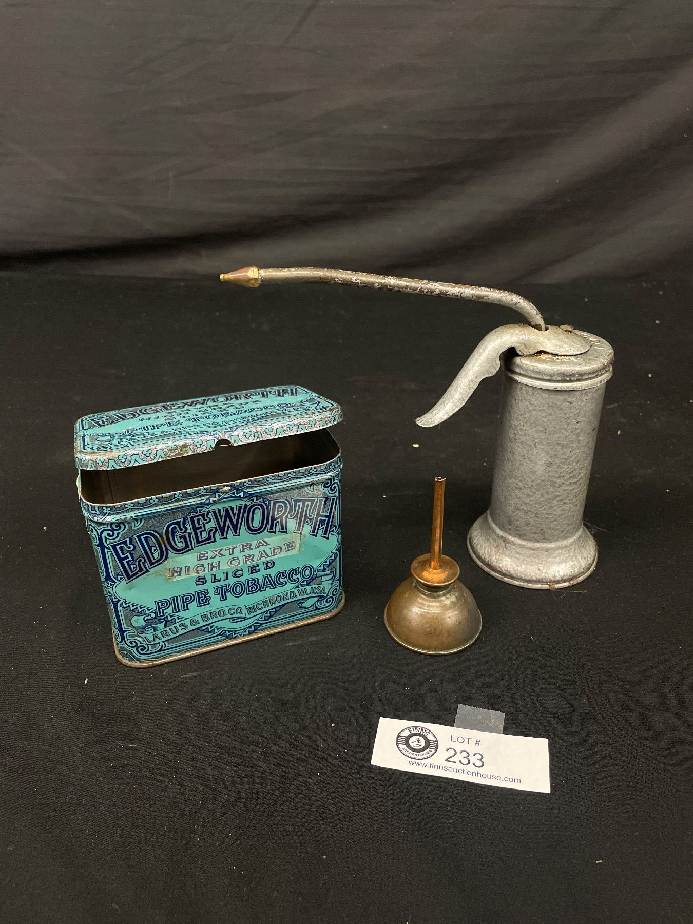 Vintage Edgeworth Pipe Tobacco Tin & 2 Oil Cans. 1 Mini