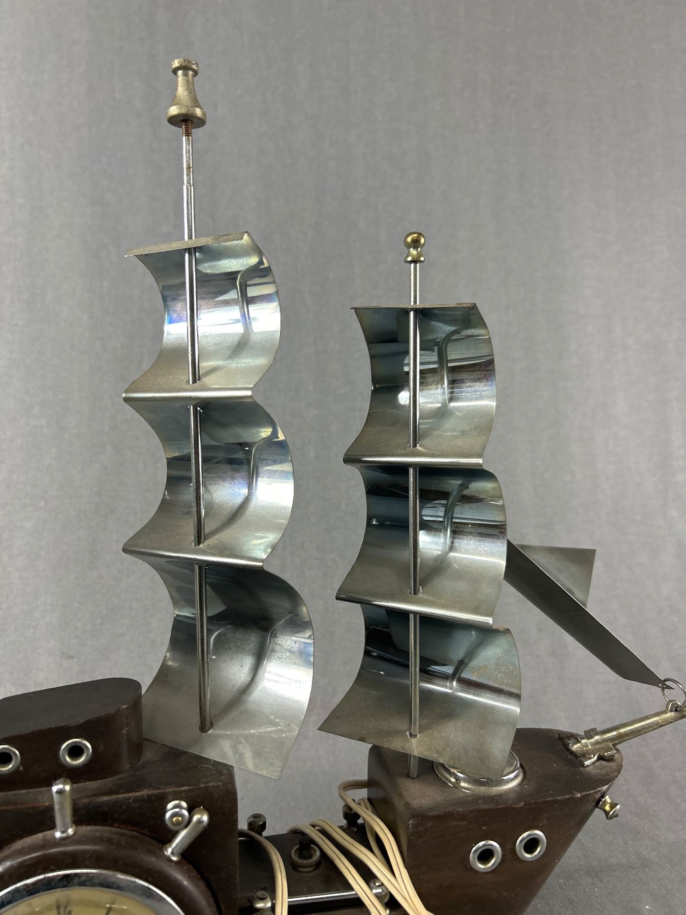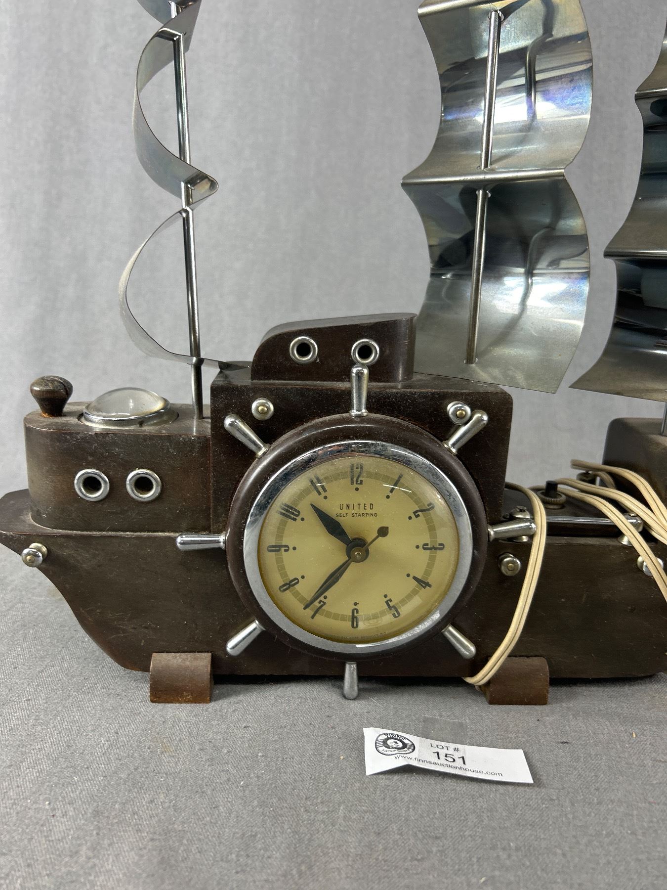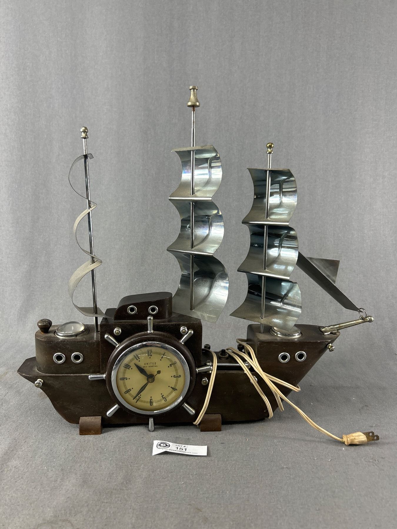 Vintage Electric "United Self Starting" Table Top Wood & Metal Ship Clock. Approx. 16.5" H x 18" L