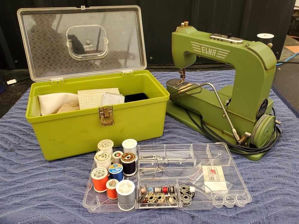 Vintage Elna Sewing Machine & Accessories - Most Items have not been tested - Viewing Recommended- 17% Buyer Fee. Payment Processed through Live Auction World ( Visa or Master Card ) pick up Wednesday