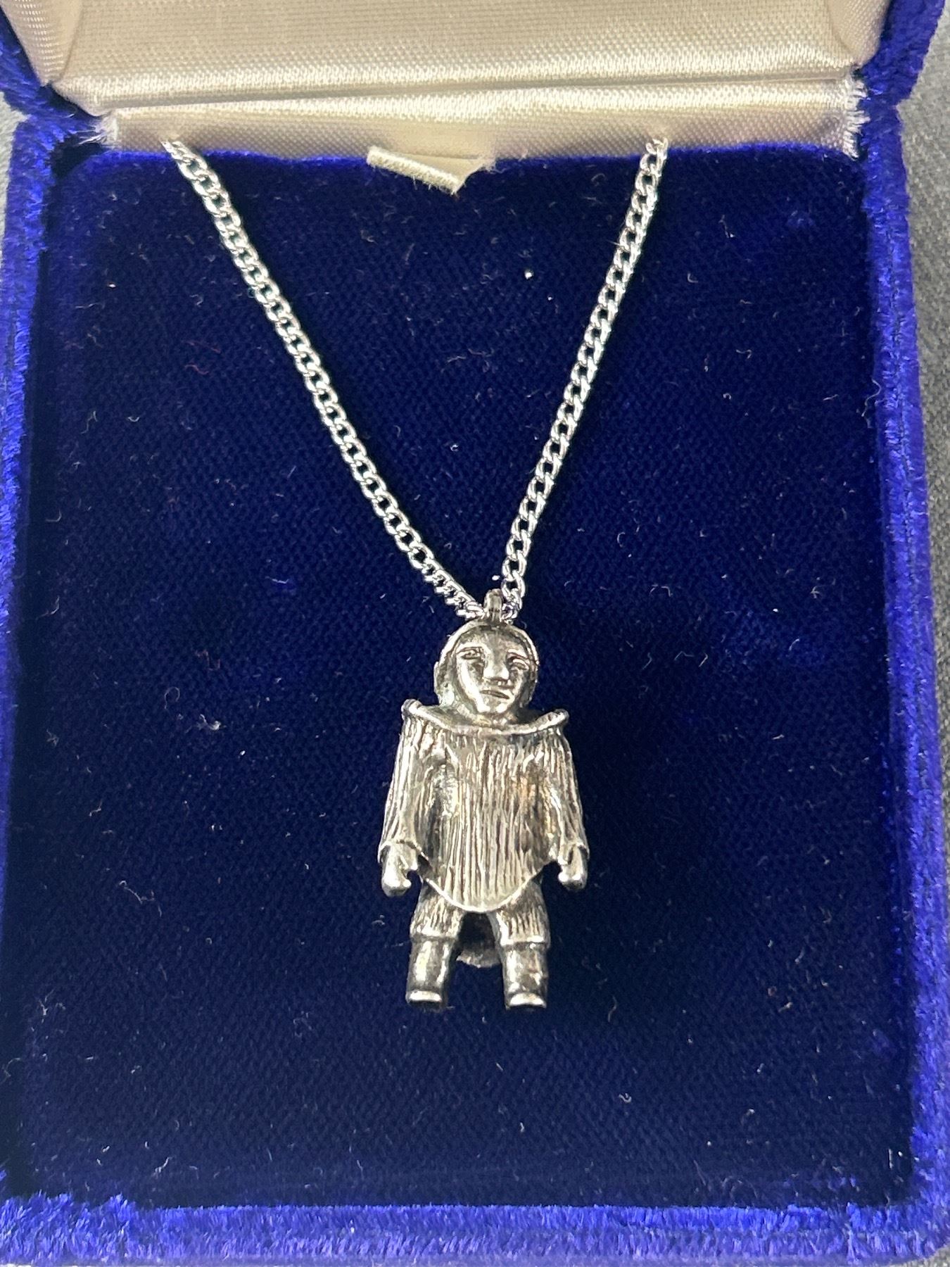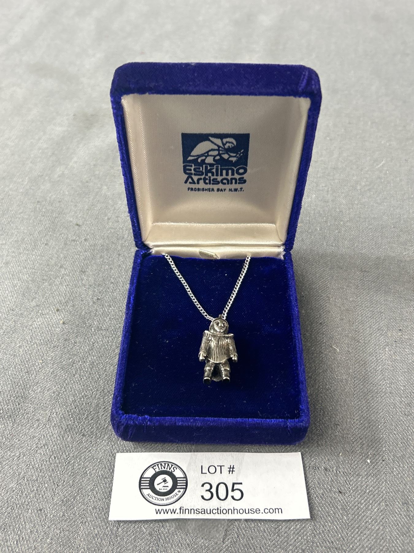 Vintage "Eskimo Artisans" NWT Necklace Marked STG SNA & Inuit Pendant Marked Sterling