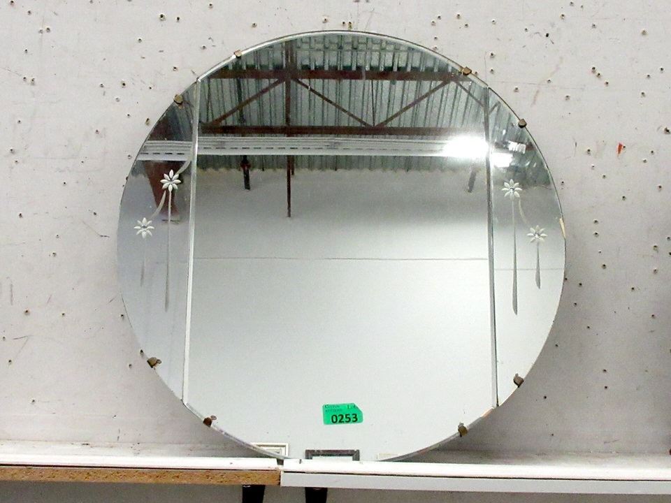 Vintage Etched Glass Mirror - 24" Diameter