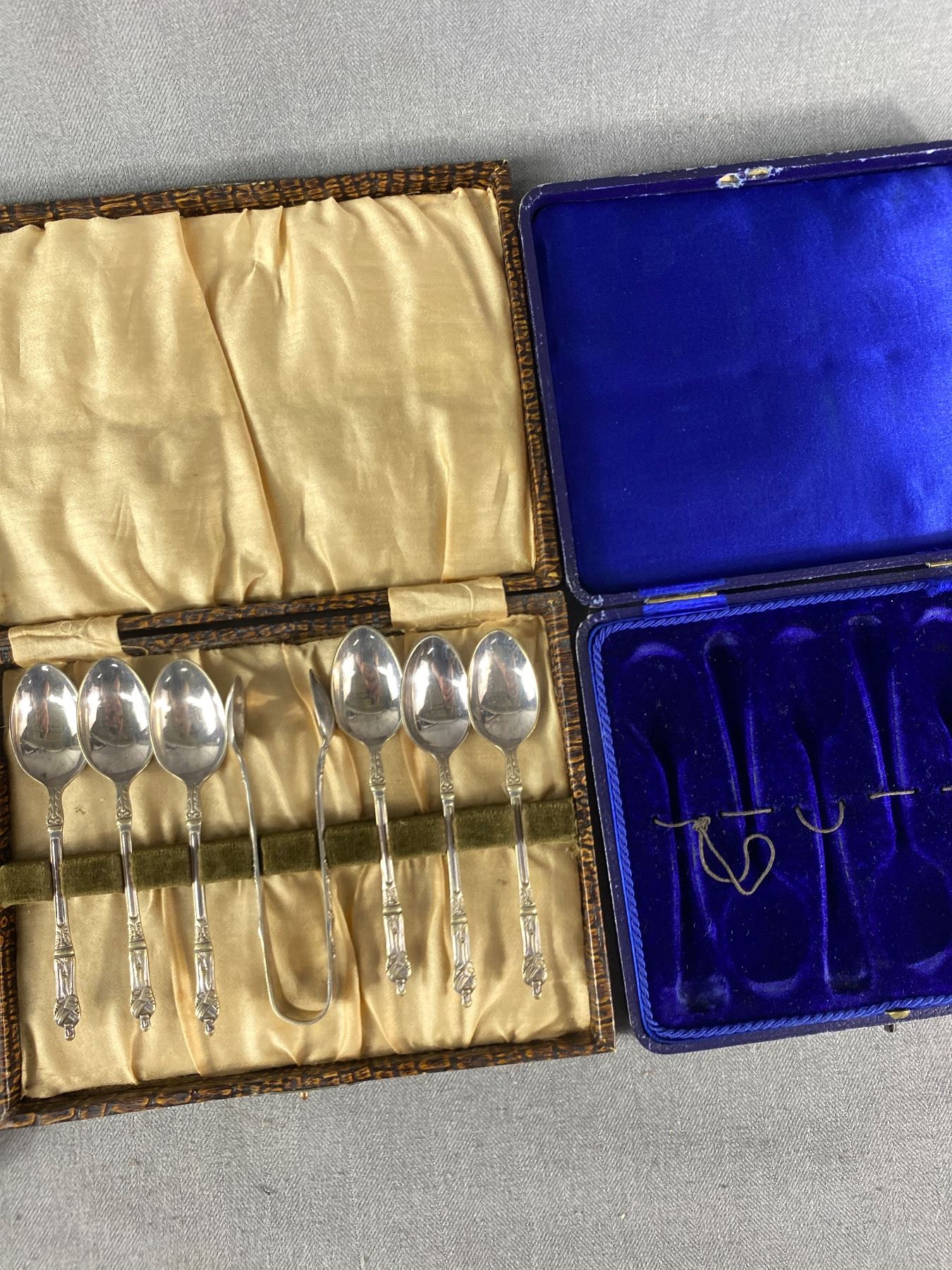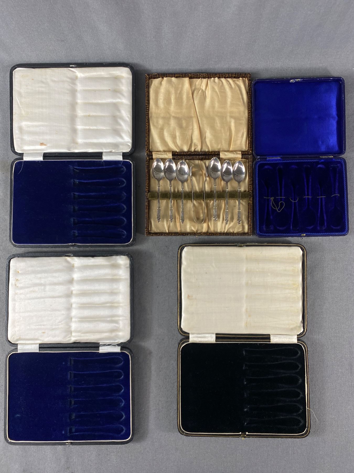 Vintage Figural Apostle On Handles E.P.N.S.Teaspoons w/Sugar Tongs In Original Case & 4 Empty Cases