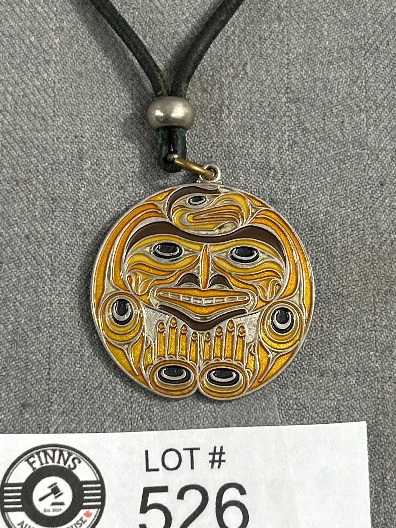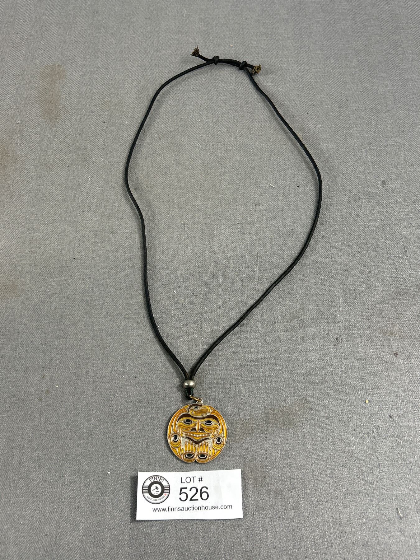 Vintage First Nation Pendant Necklace, Marked Artist Joe Wilson Hiwske