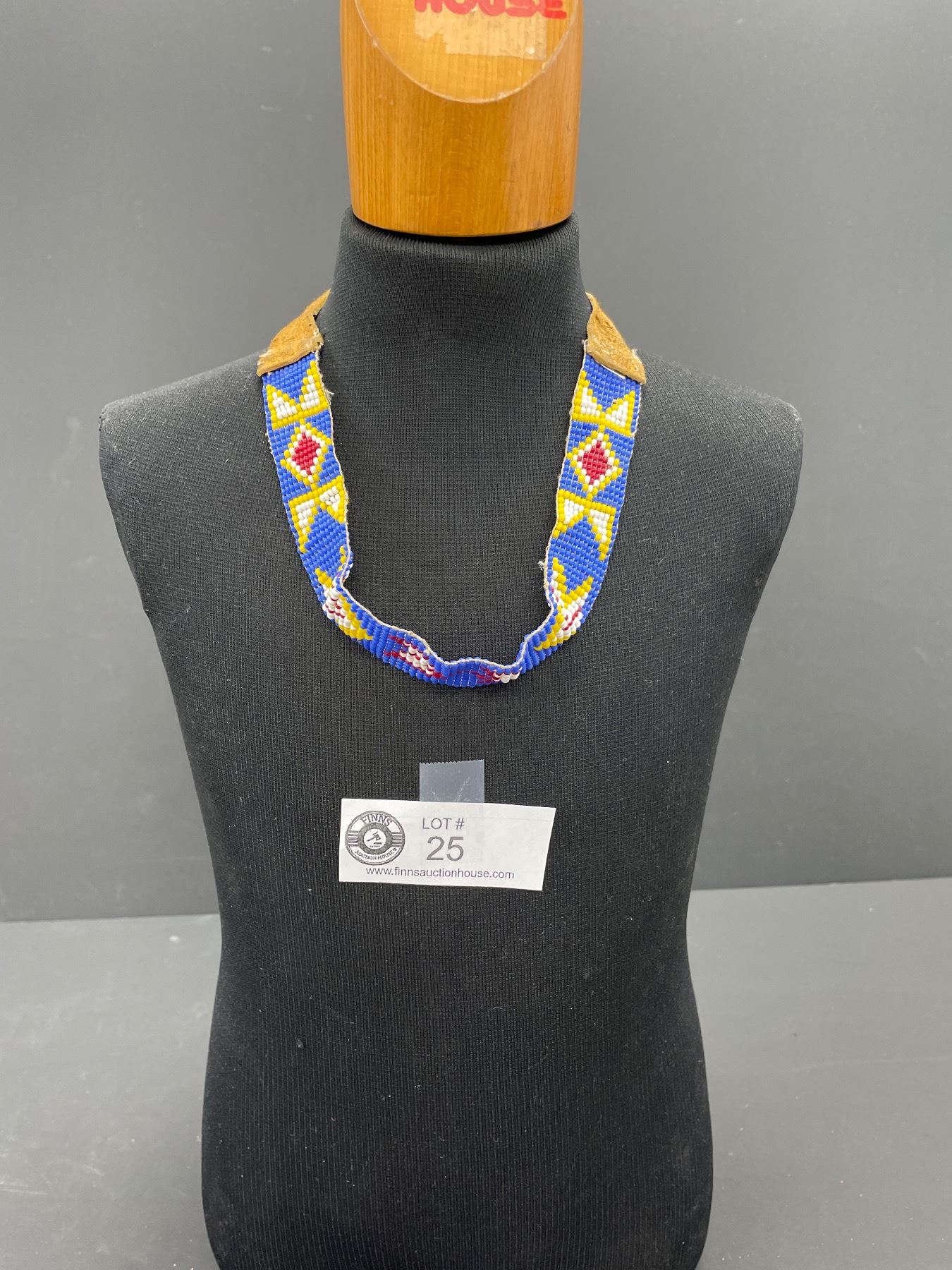 Vintage First Nations Beaded Choker with Leather Ties