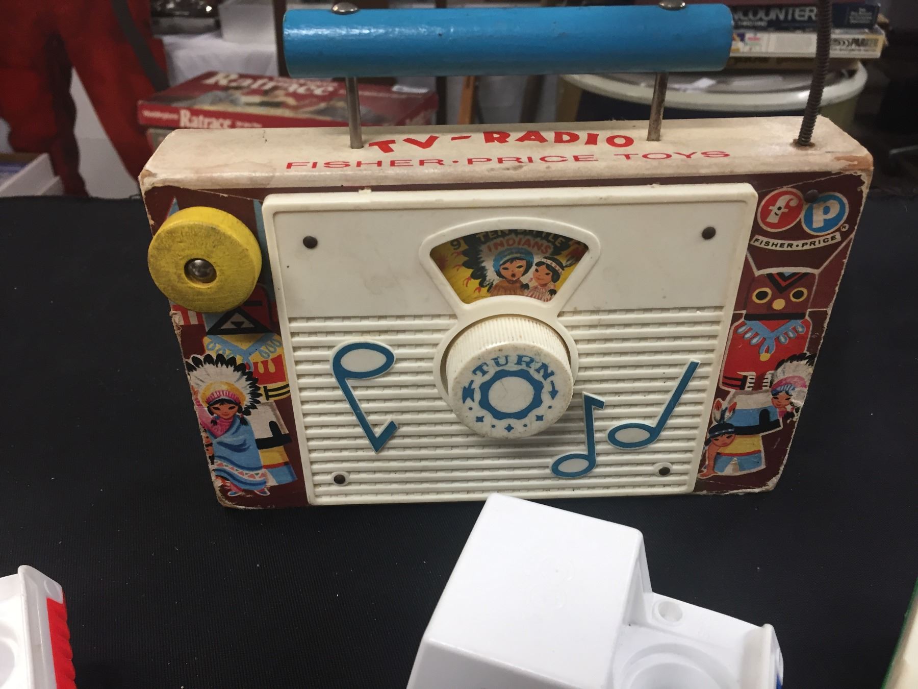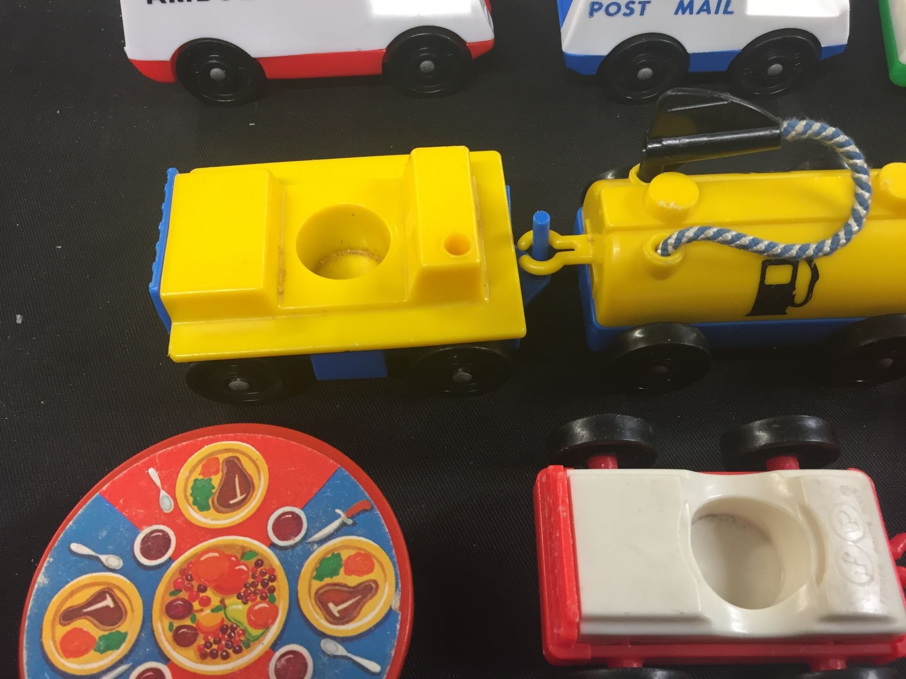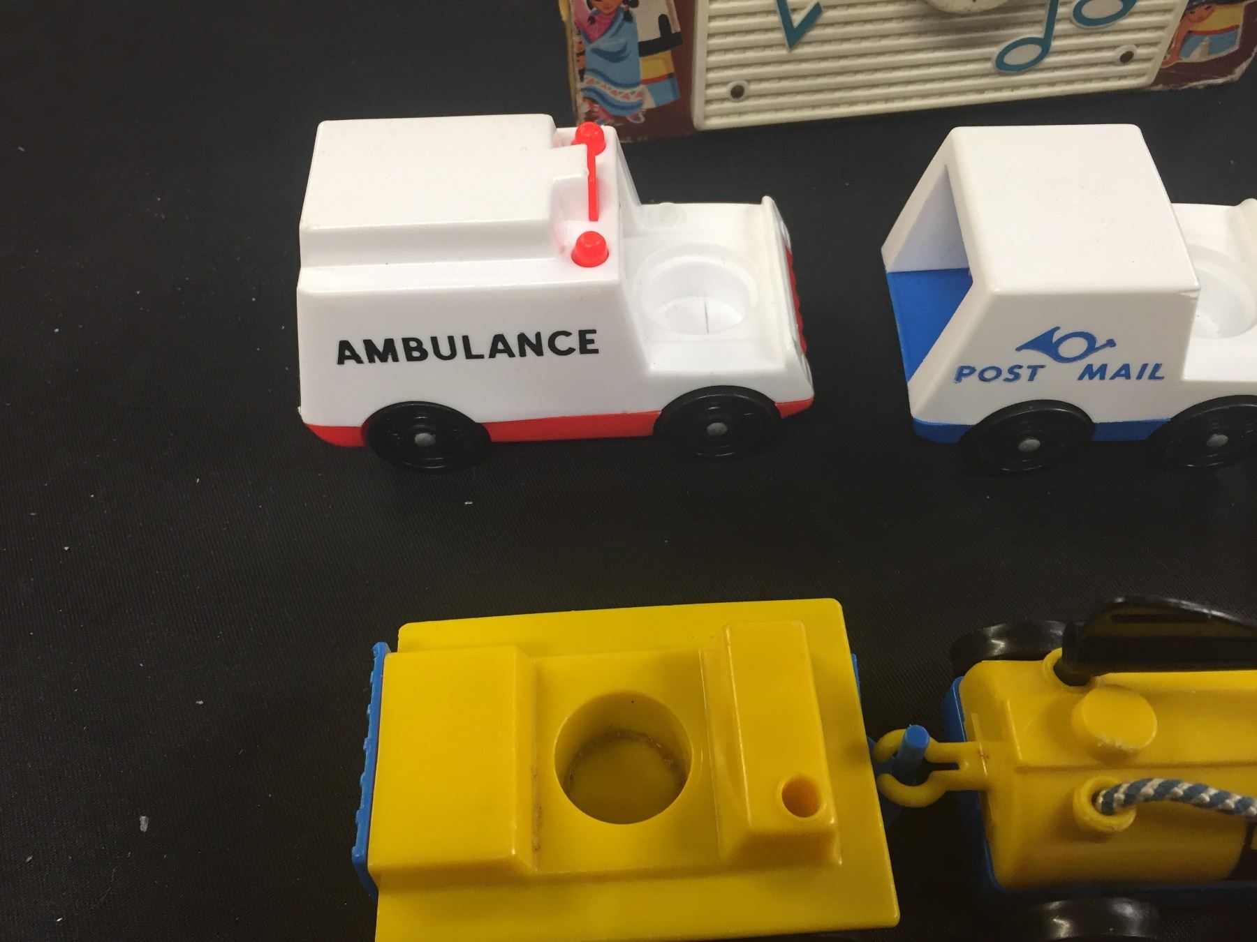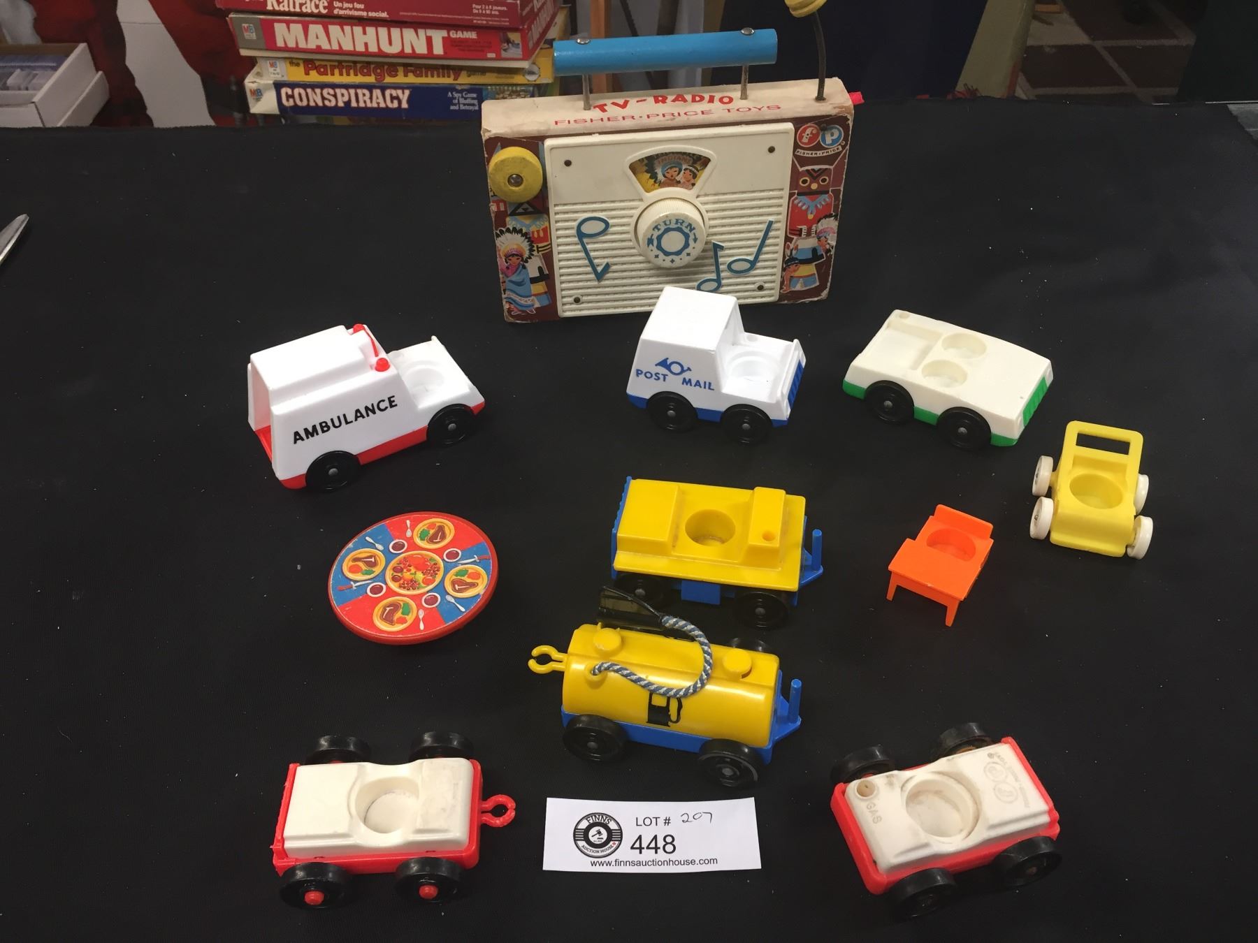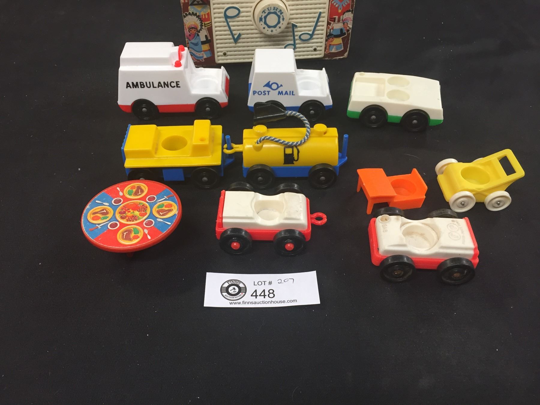 Vintage Fisher Price Little People Lot. Tv, Radio, Supper Table, Vehicles