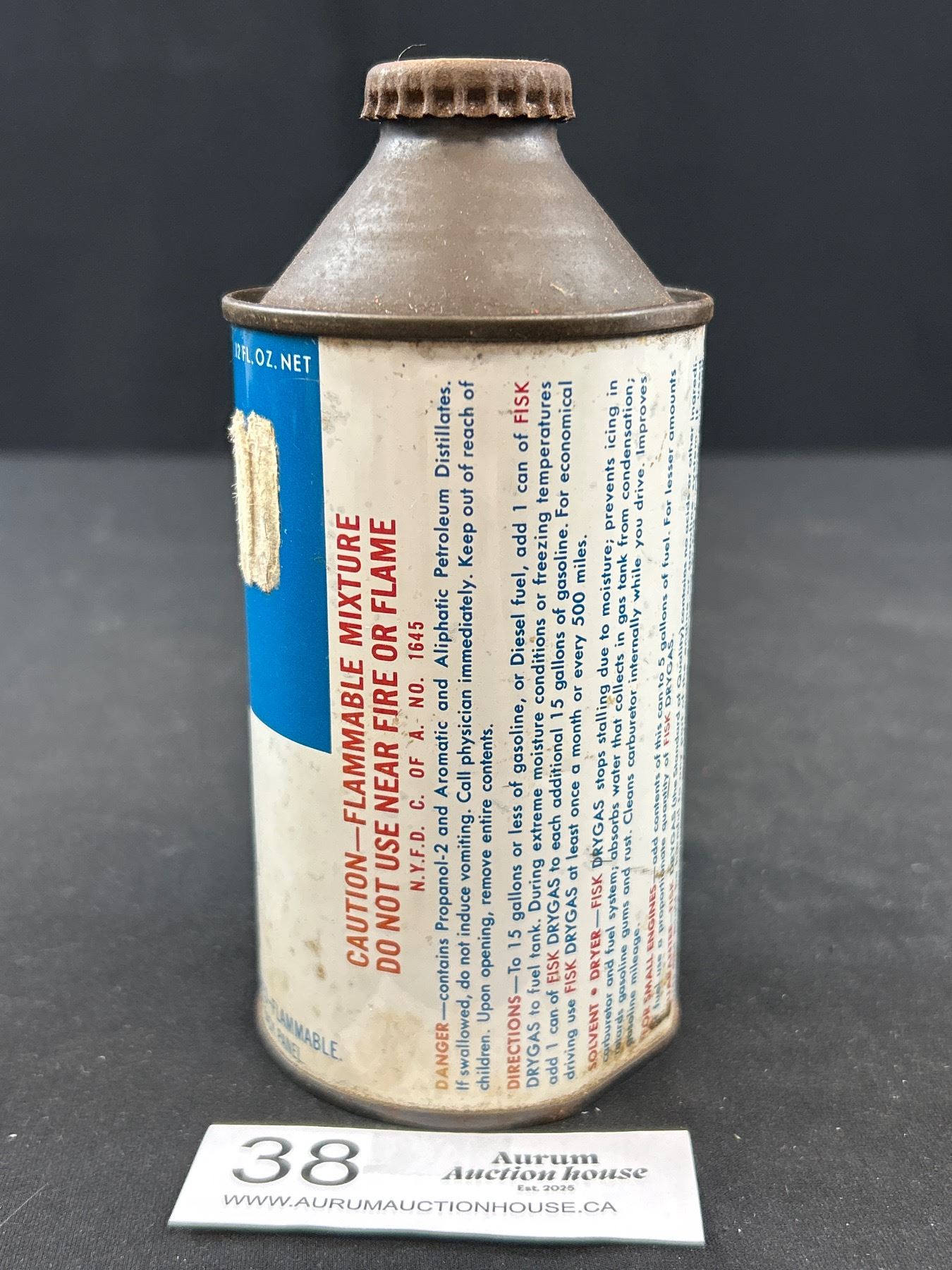Vintage Fisk Dry Gas Gas Line Anti Freeze, Full Tin