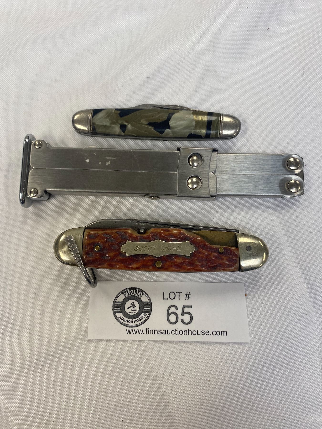 Vintage Fixed Butterfly Knife, Scout Knife and Camo Folding Knife