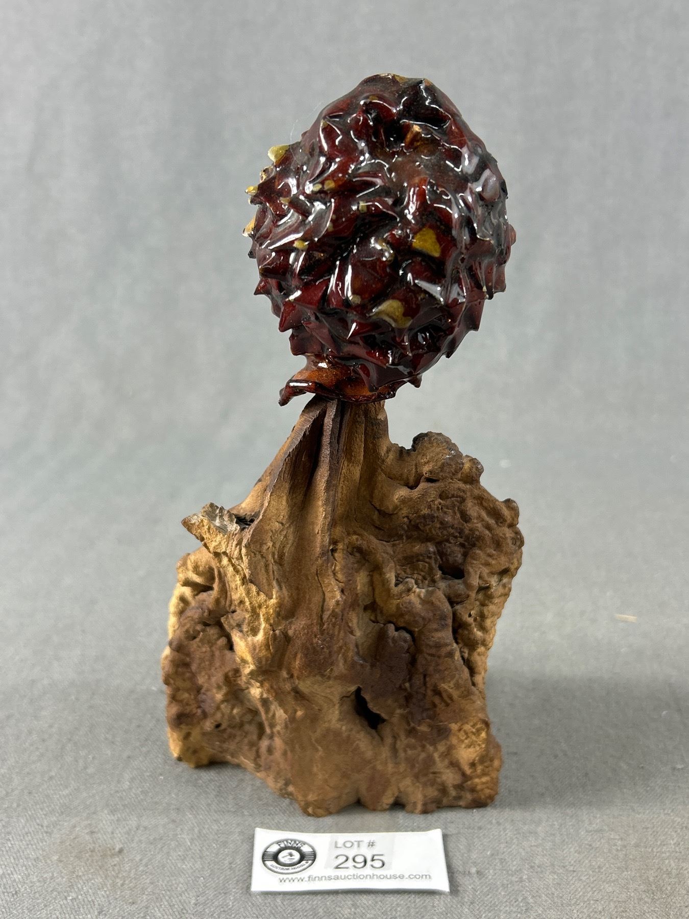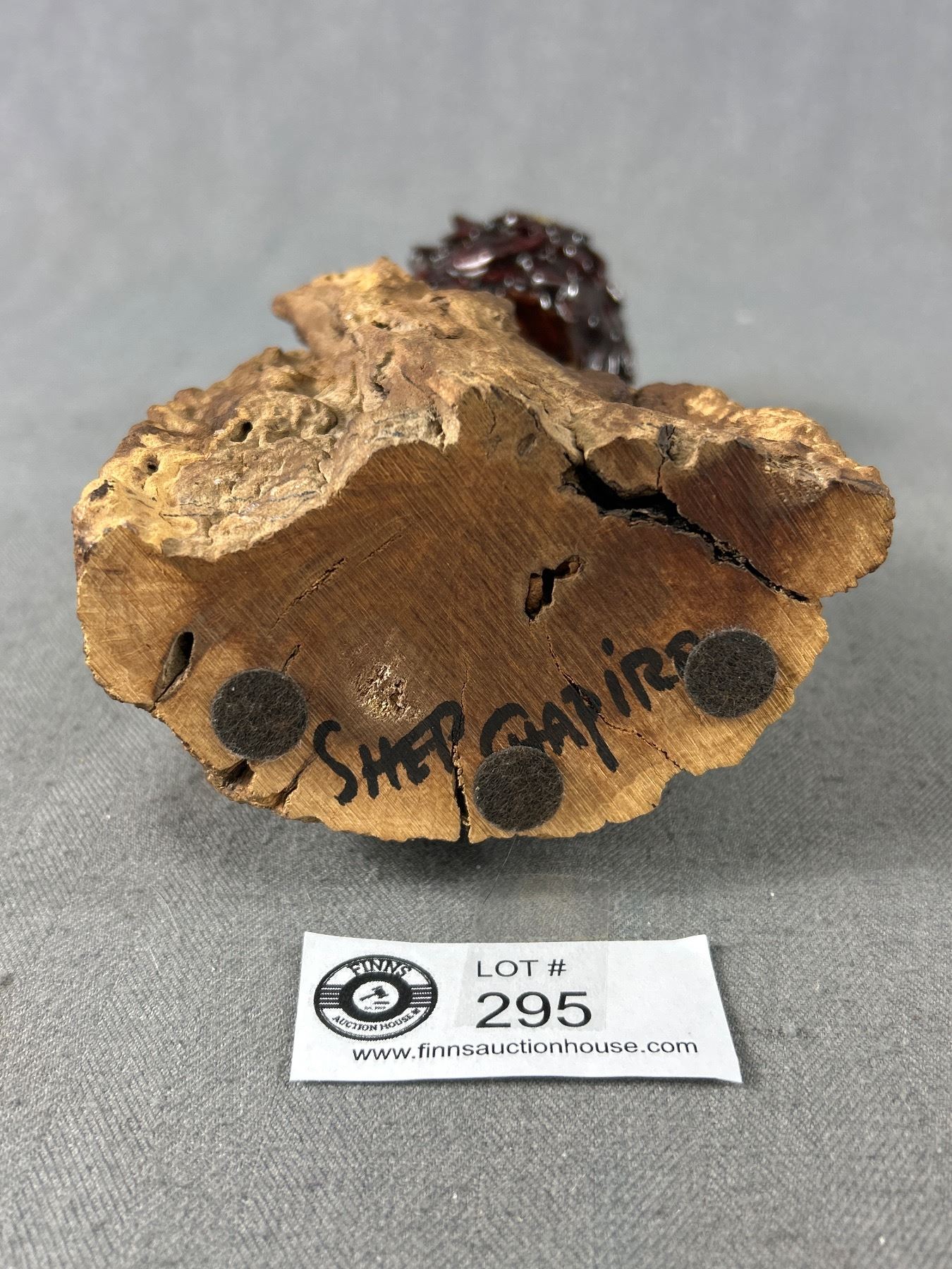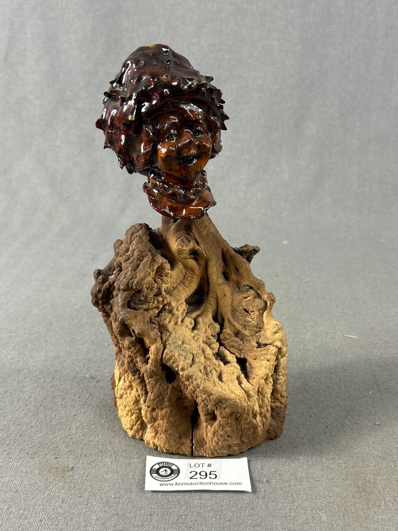 Vintage Folk Art Signed Shep Shapiro Apple Head Carving on Driftwood Sculpture -9" Tall