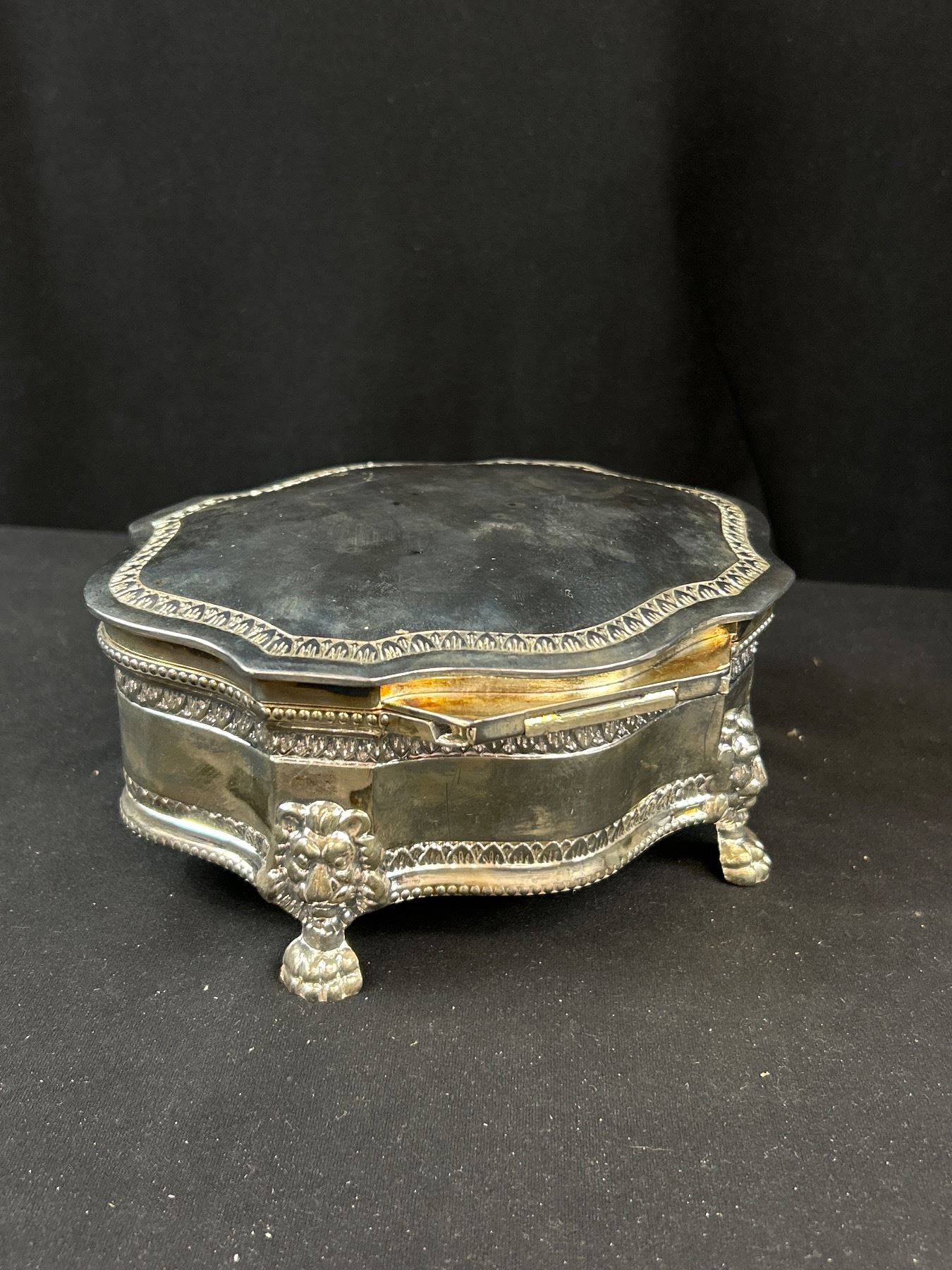 Vintage Footed Silver Jewelry Box Quality!