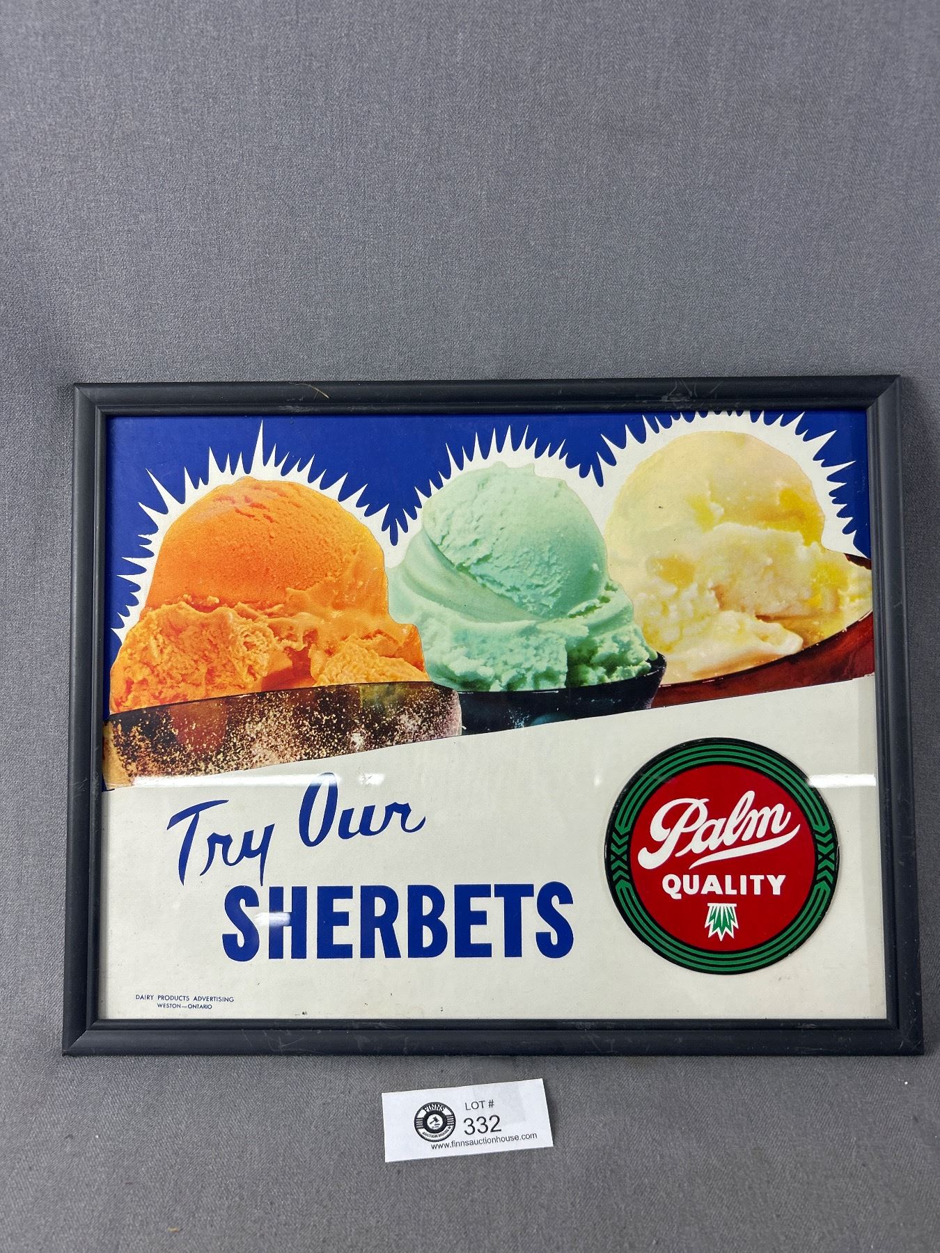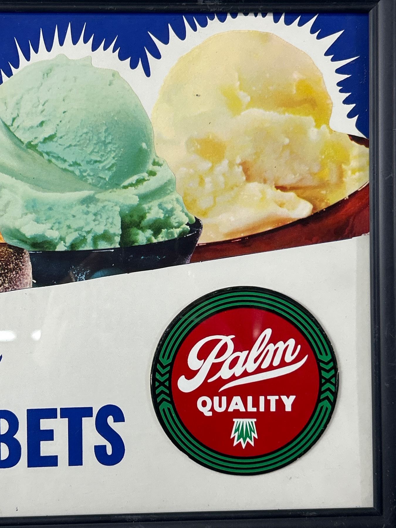 Vintage Framed "Palm Try Our Sherberts" Advertisement. Approx. 15" x 12"