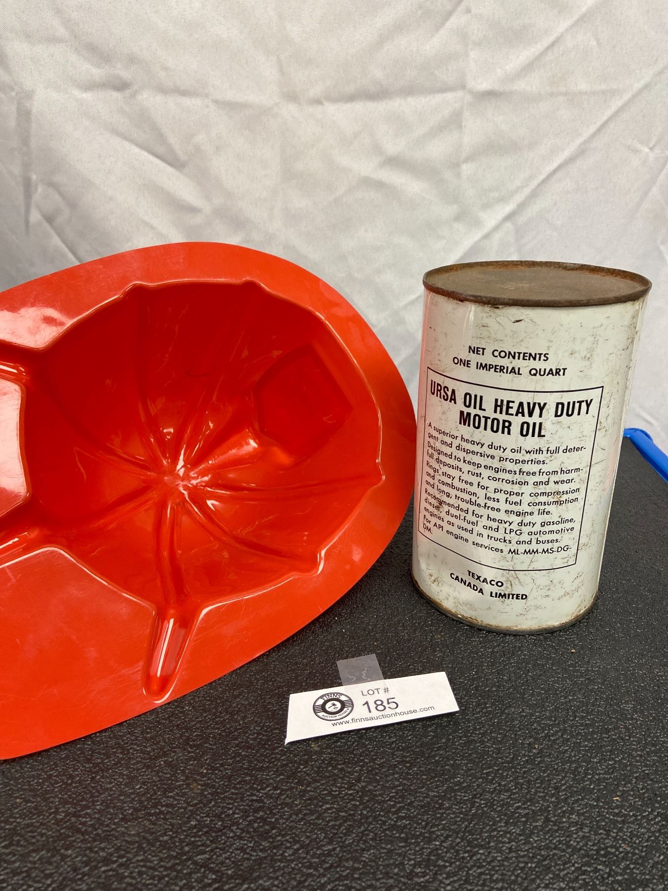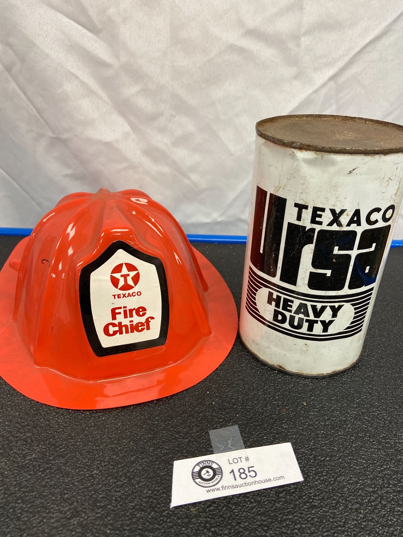 Vintage Full Texaco URSA Heavy Duty Tin +Child's Texaco Fire Chief Hat