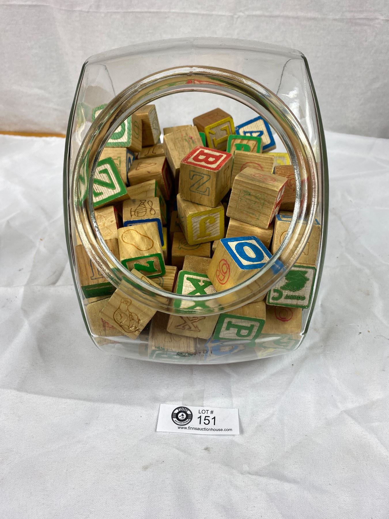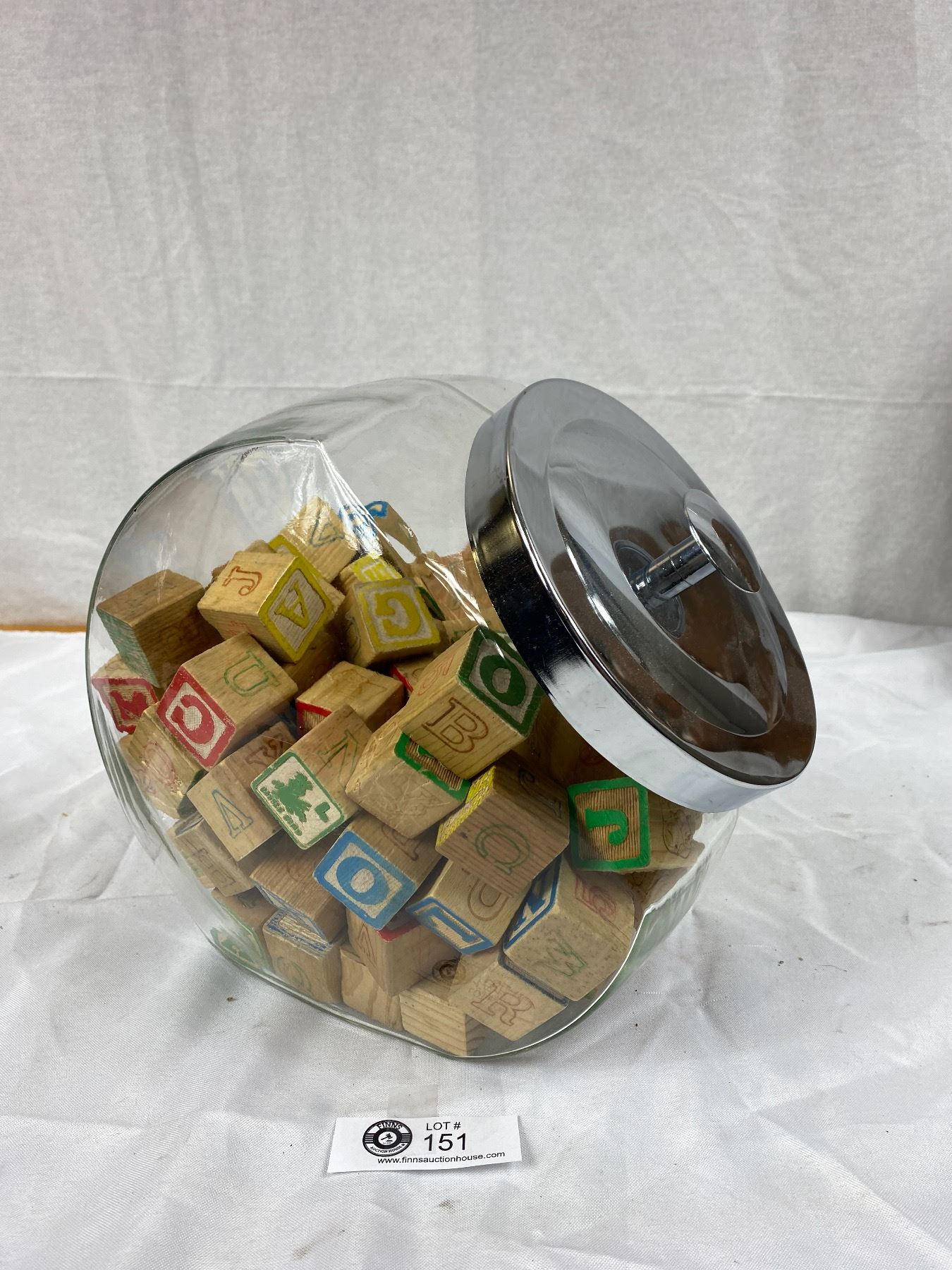Vintage General Store Glass Tilting Canister Filled w/ Wood Blocks