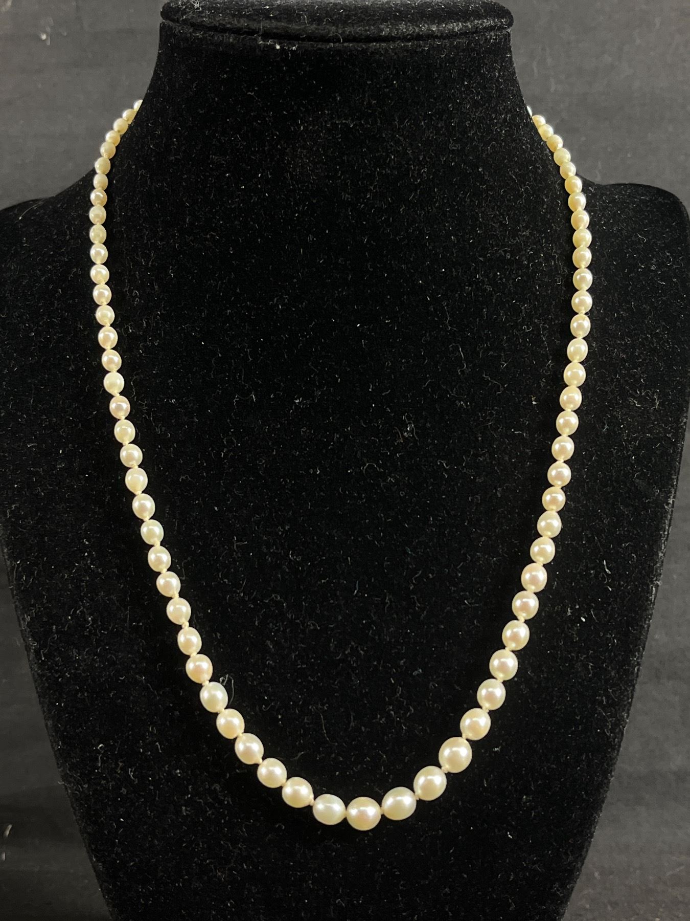 Vintage Genuine Pearls Necklace Hand Knotted & Graduated Original Clasp