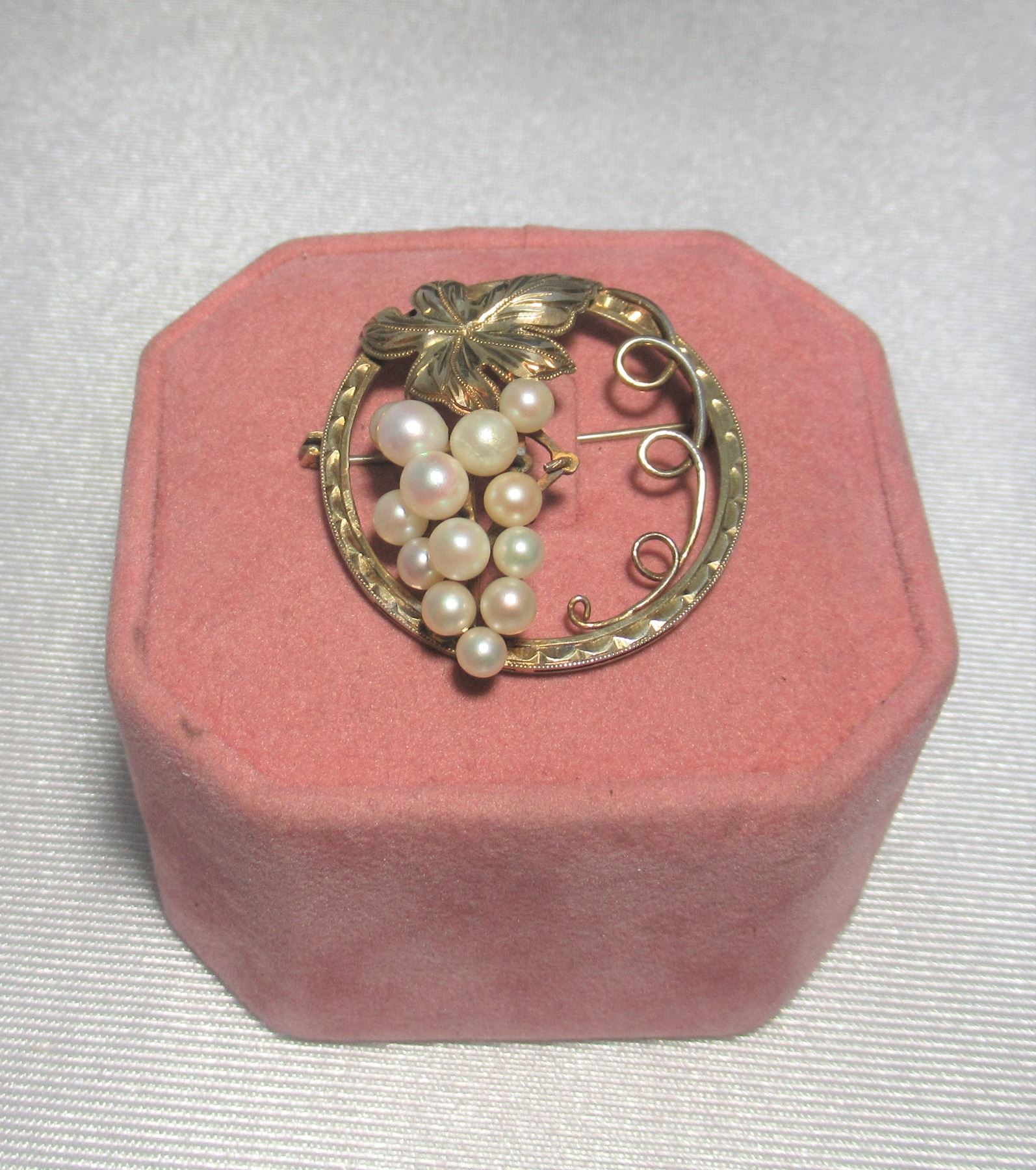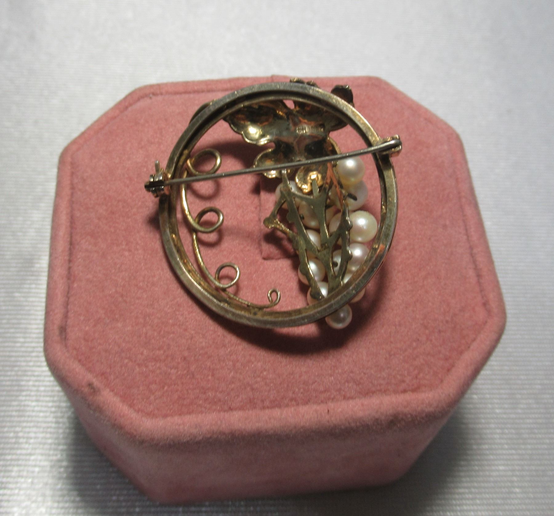 Vintage Gilded Sterling Silver Brooch. Genuine Pearls. Signed STG Silver