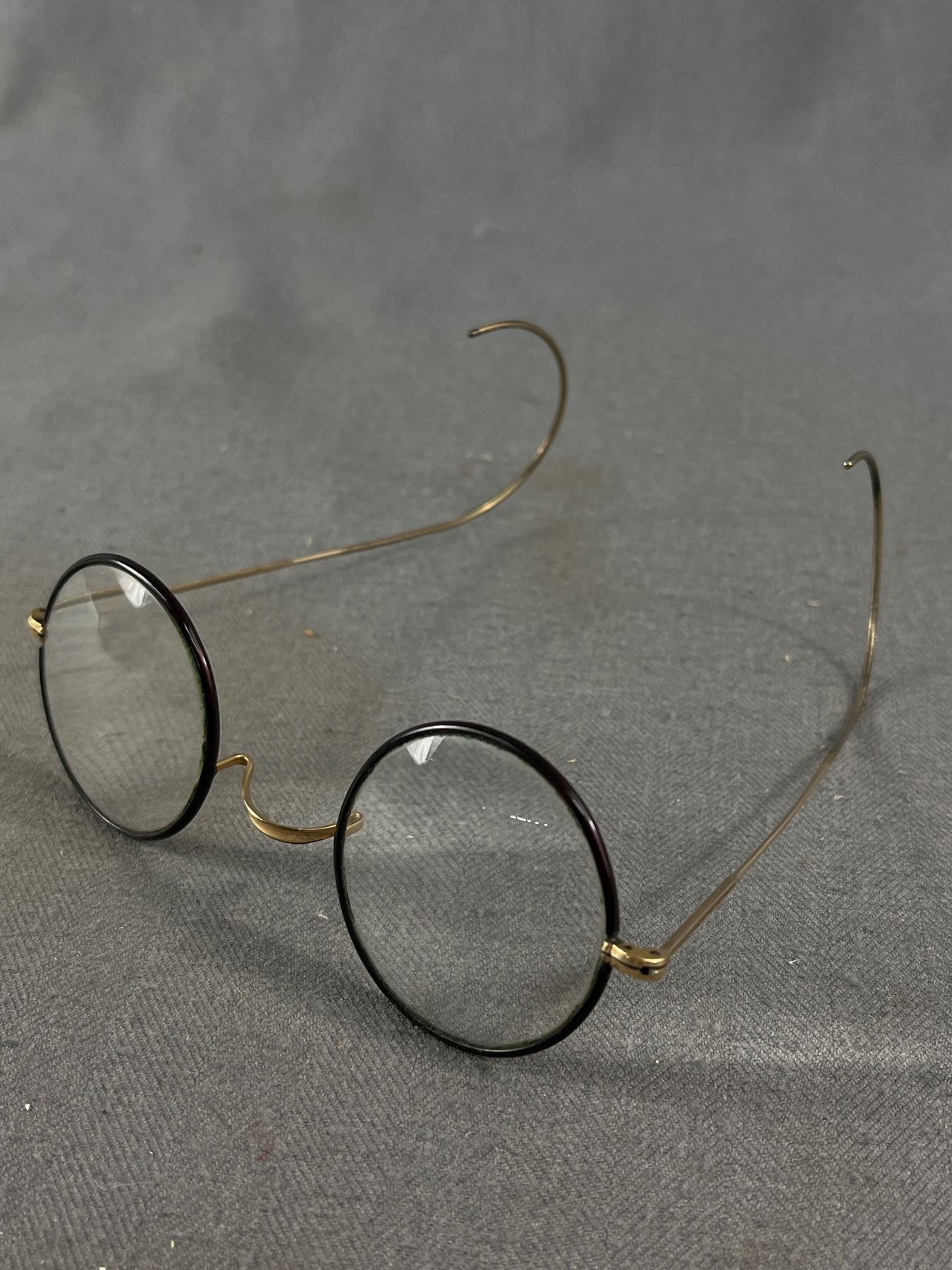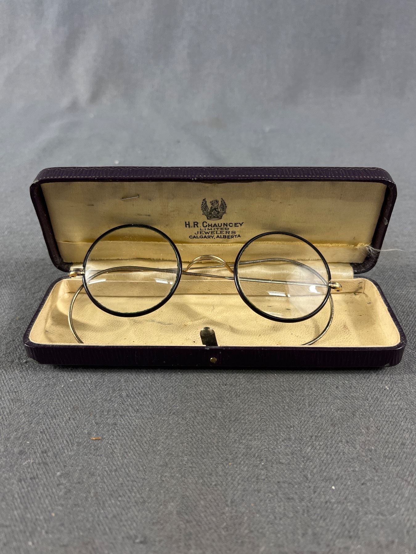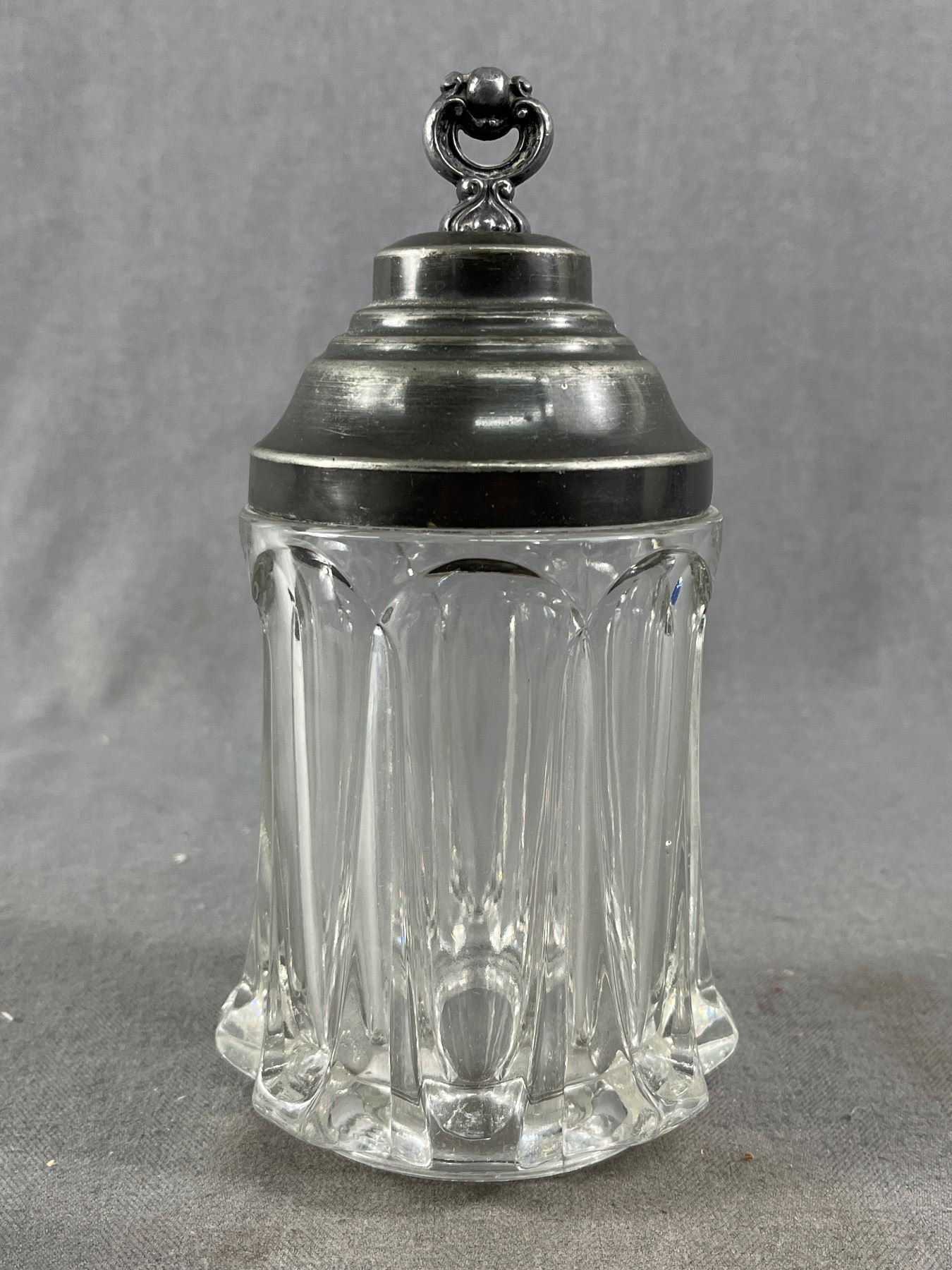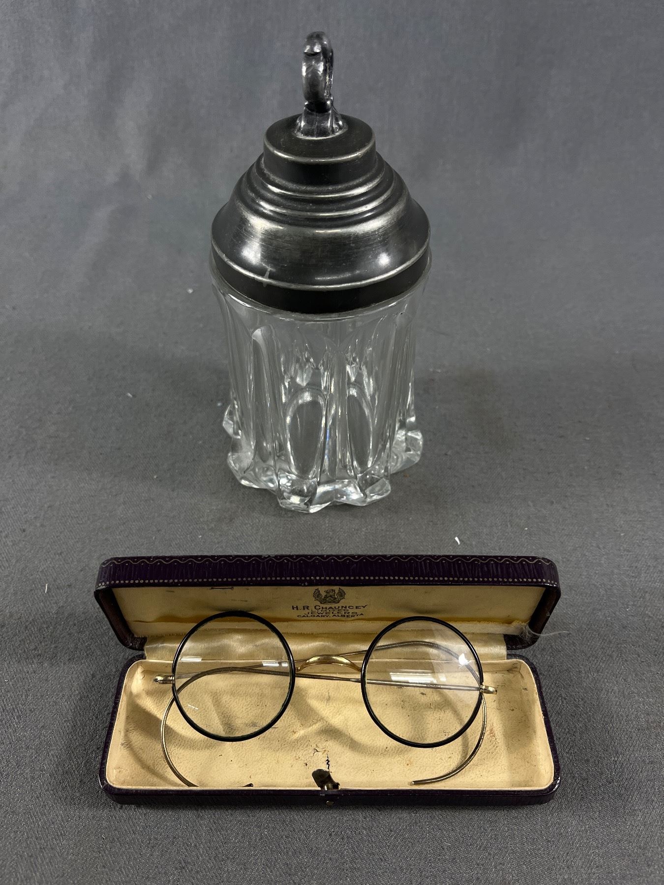 Vintage Glass Condiment Jar w/ Metal Lid. Approx. 7.5"H & Antique Spectacle Glasses In Case