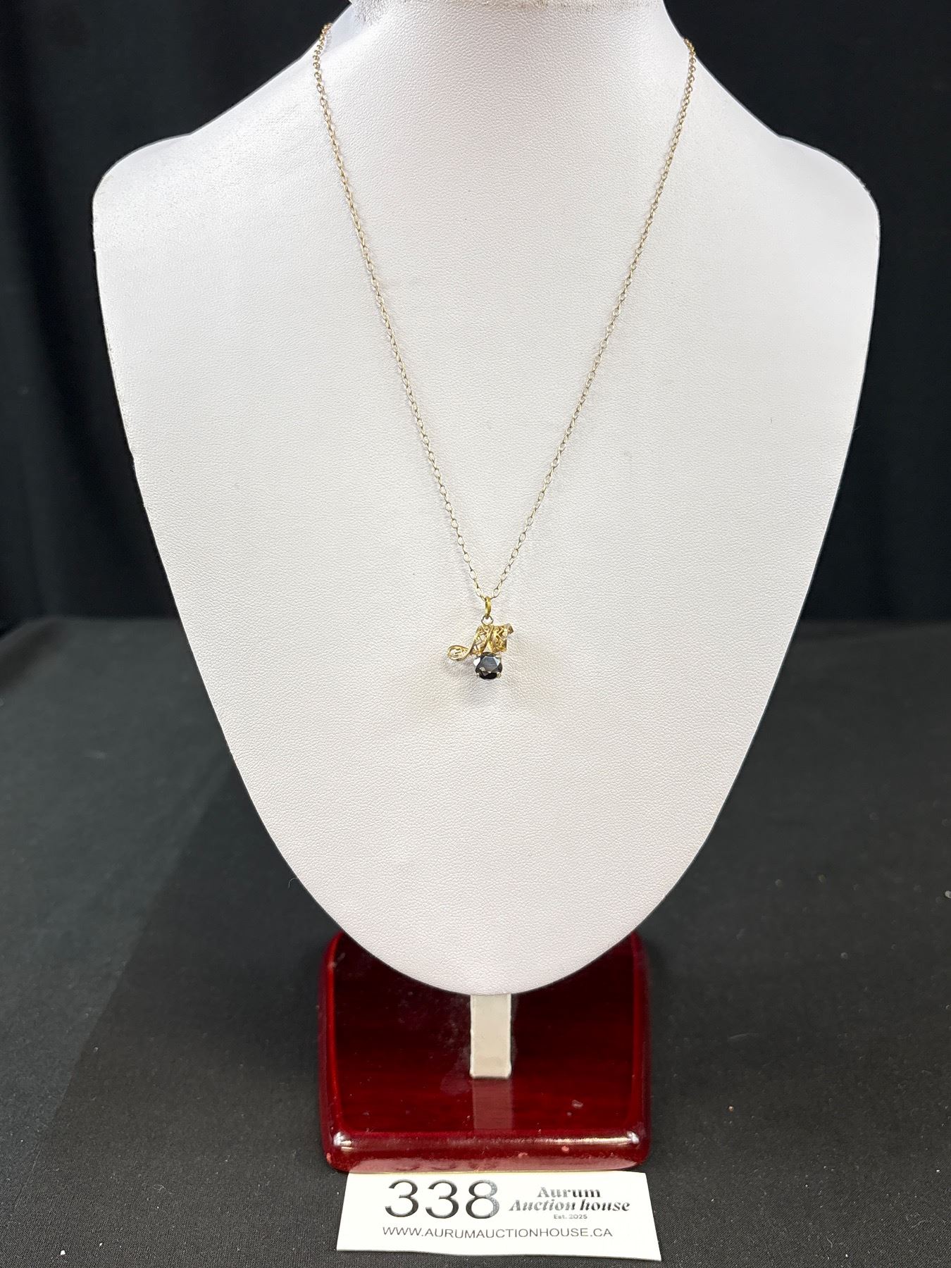 Vintage Gold Filled w/ Black Alaskan Diamond Stone Pendant, Marked Titan G.F. w. Chain Necklace