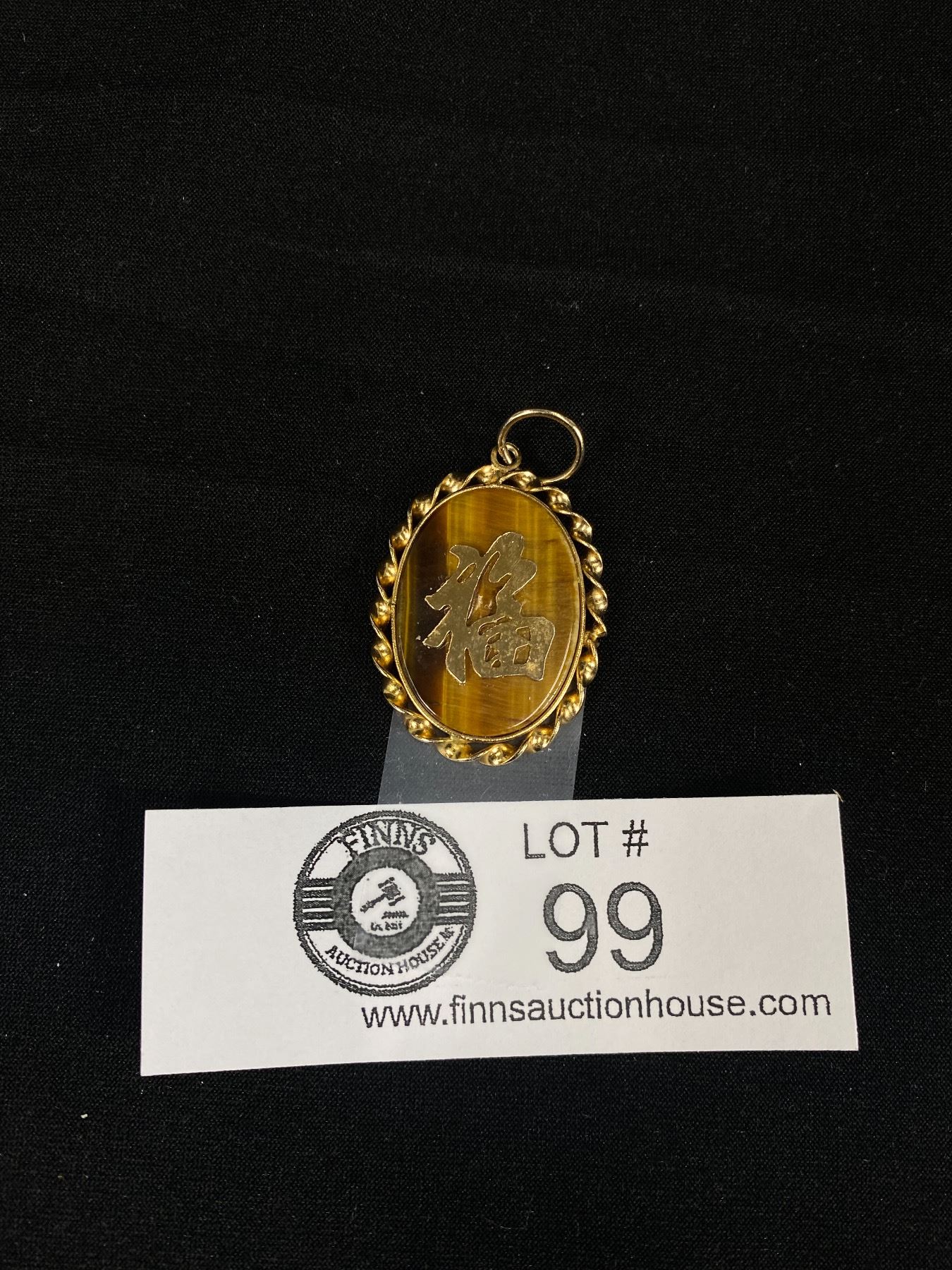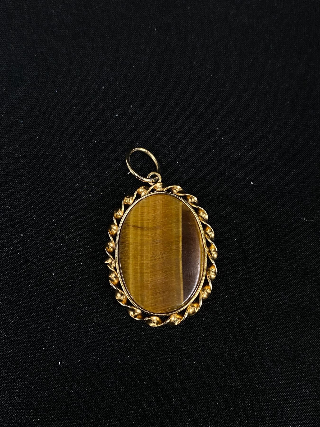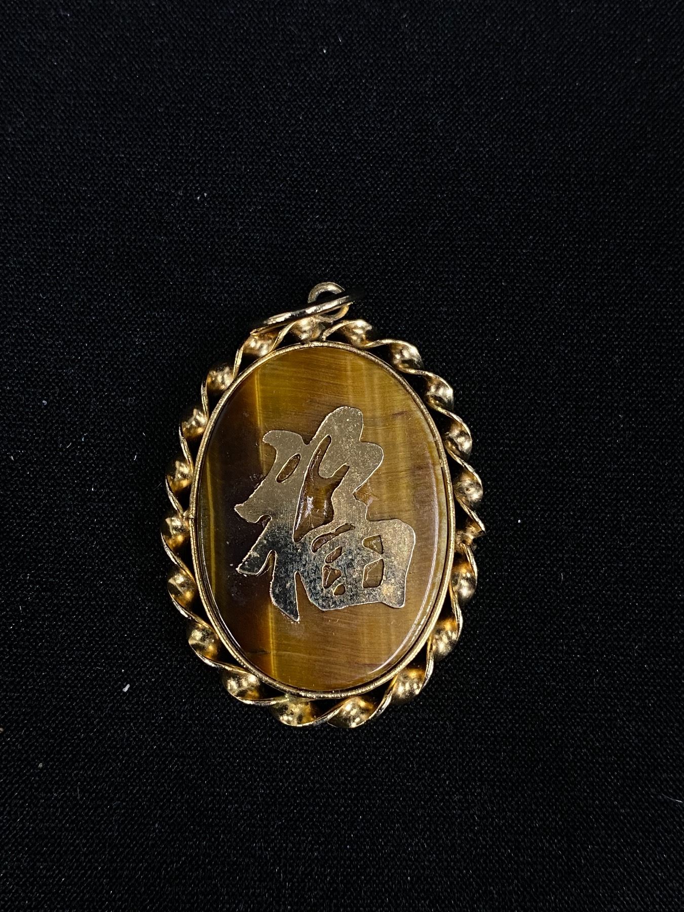 Vintage Gold Plated Oriental Pendant with Tiger Eye Stone