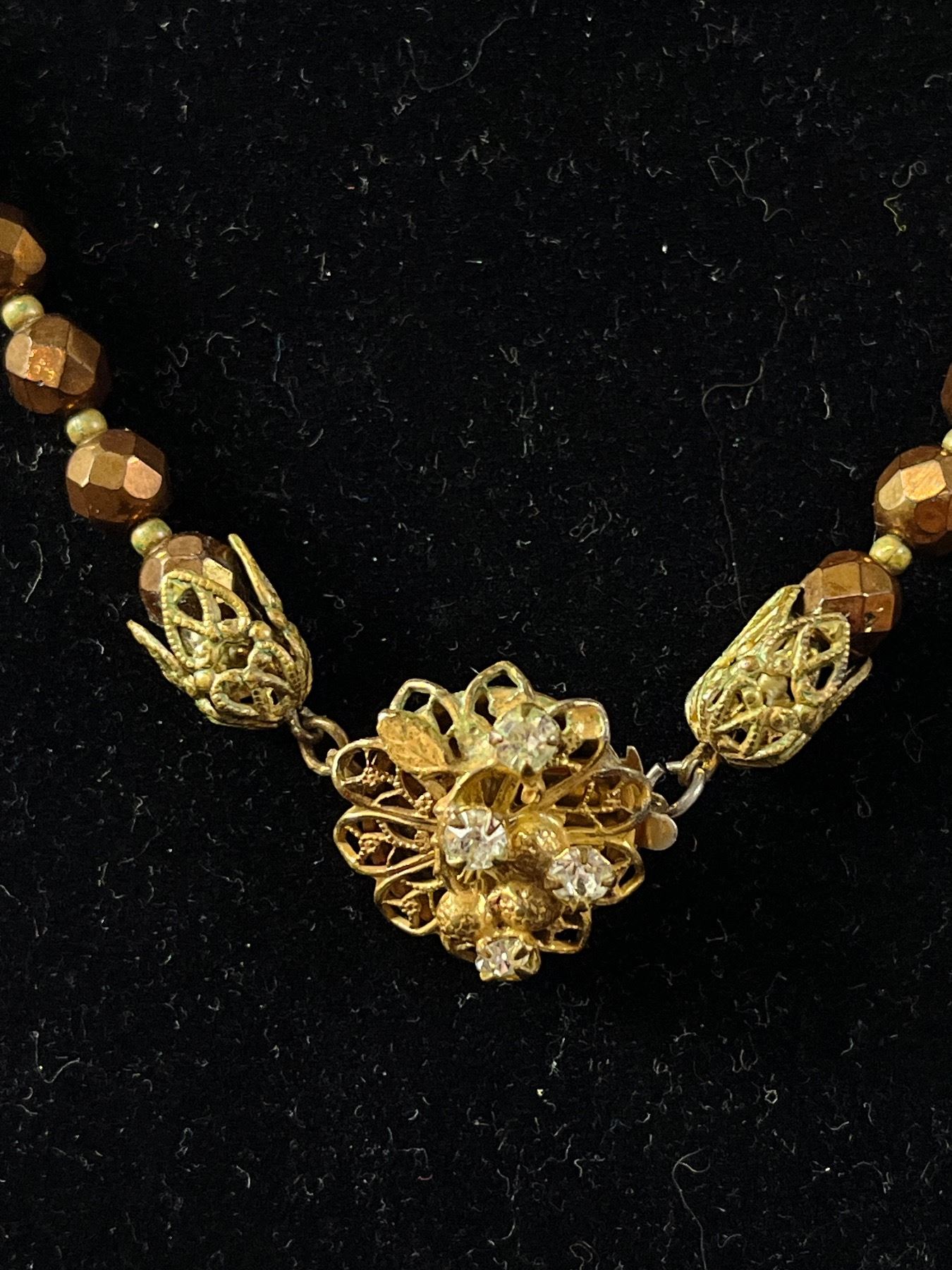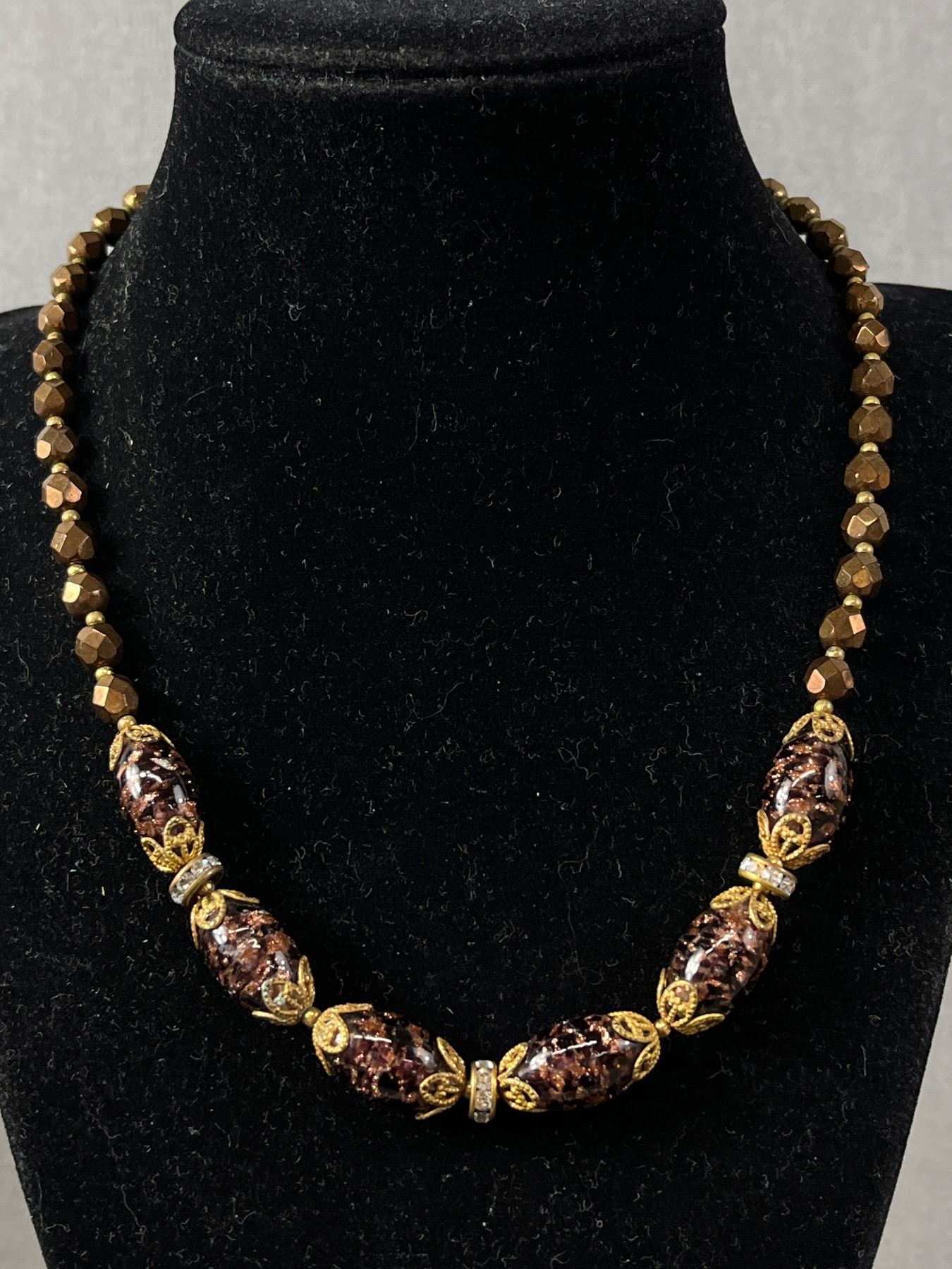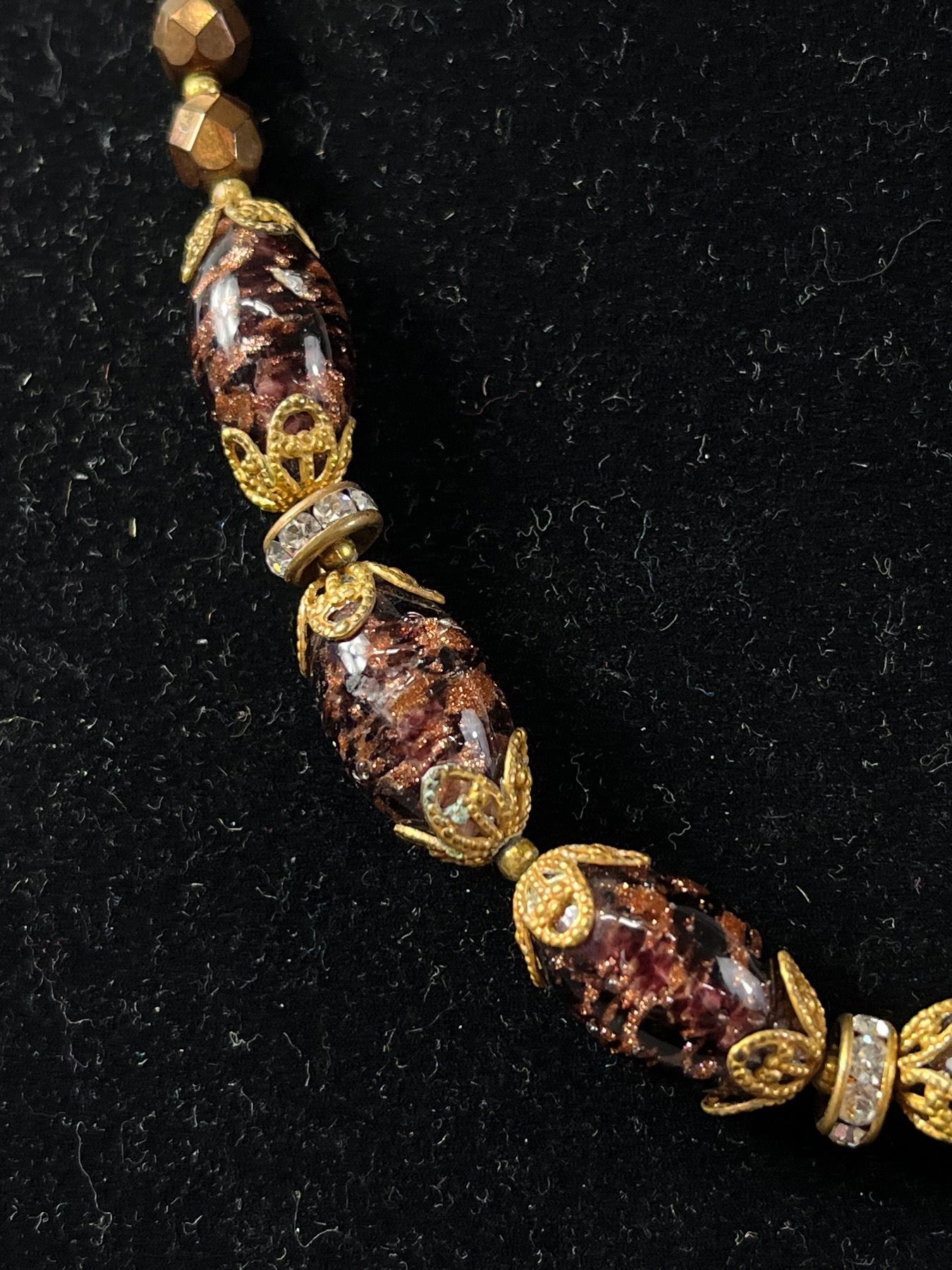Vintage Gold Stone Murano Glass Italy Necklace Unusual