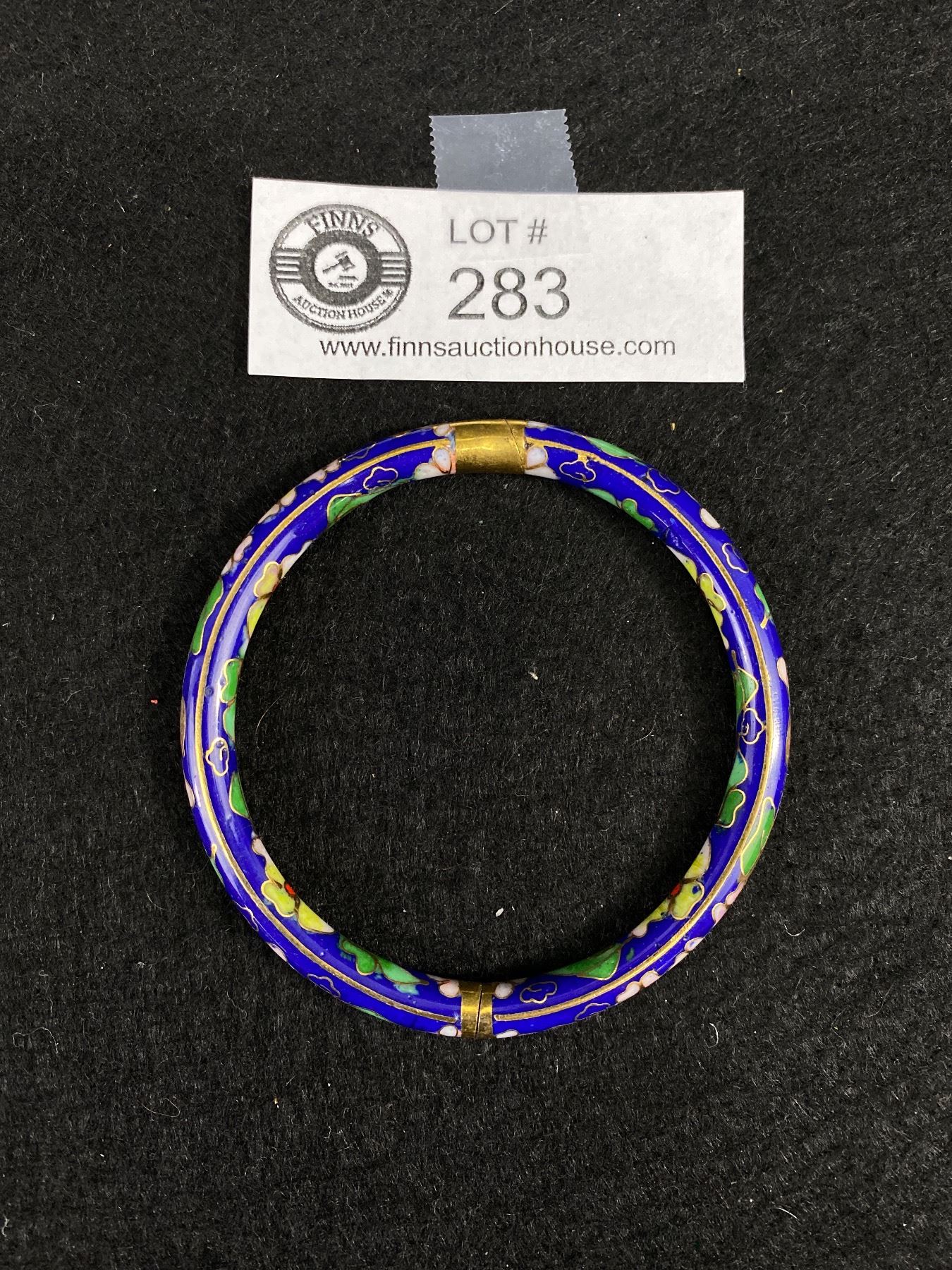 Vintage Gold Tone Enamel Hinged Closonne Bangle