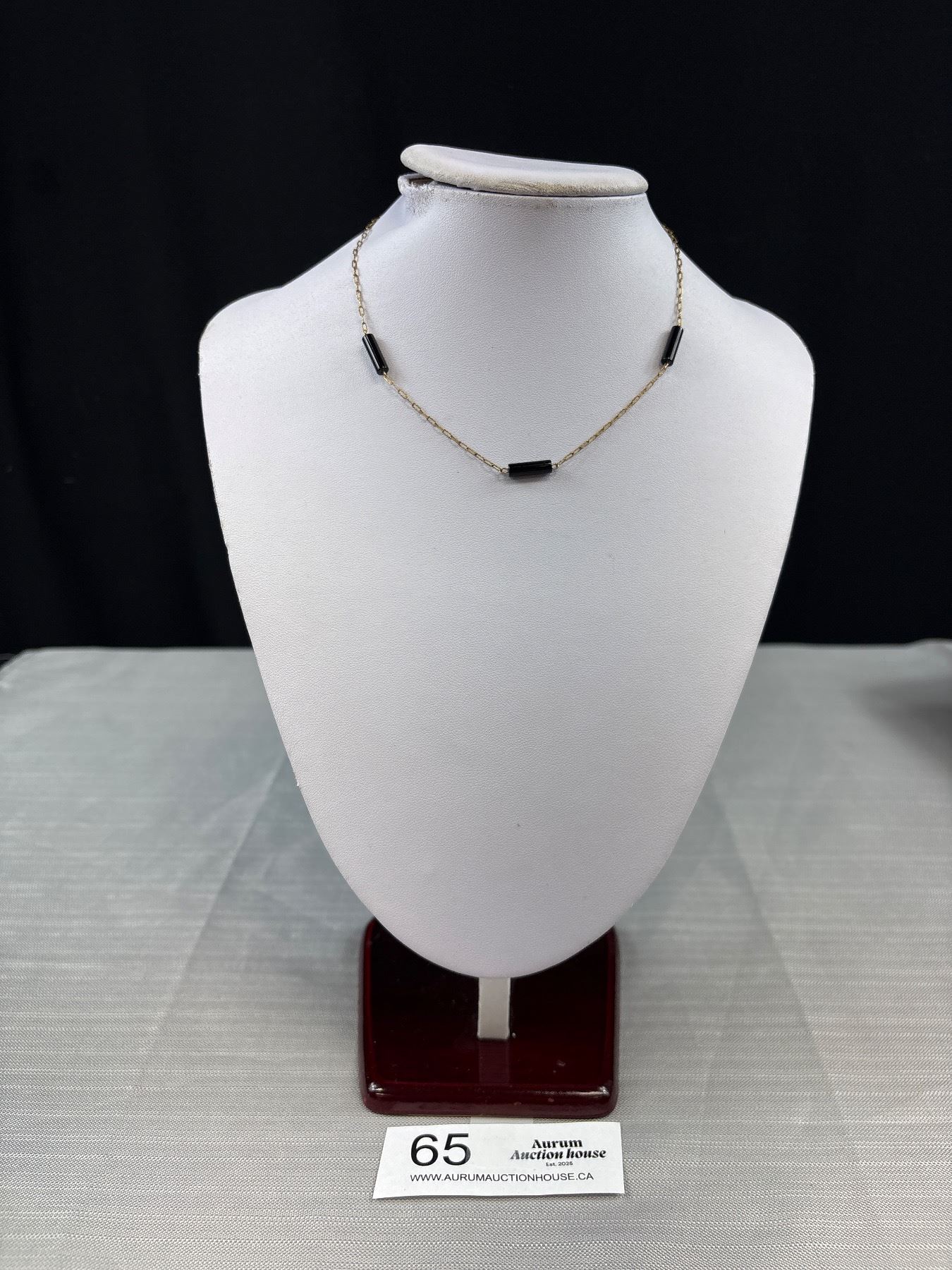 Vintage Gold w/ Black Onyx Stones Necklace, Marked TOR. G.F.