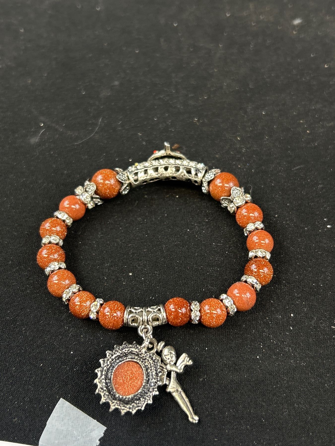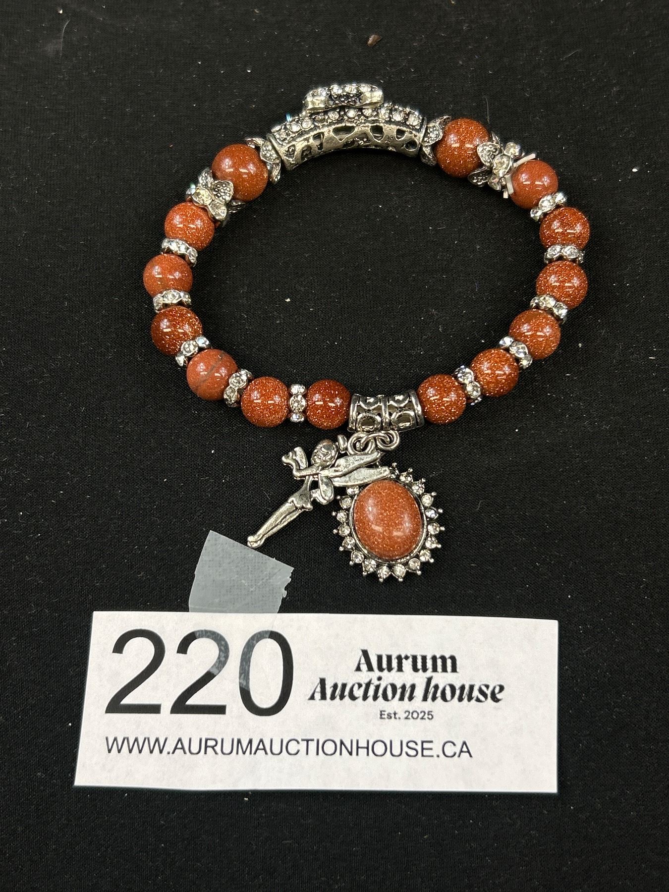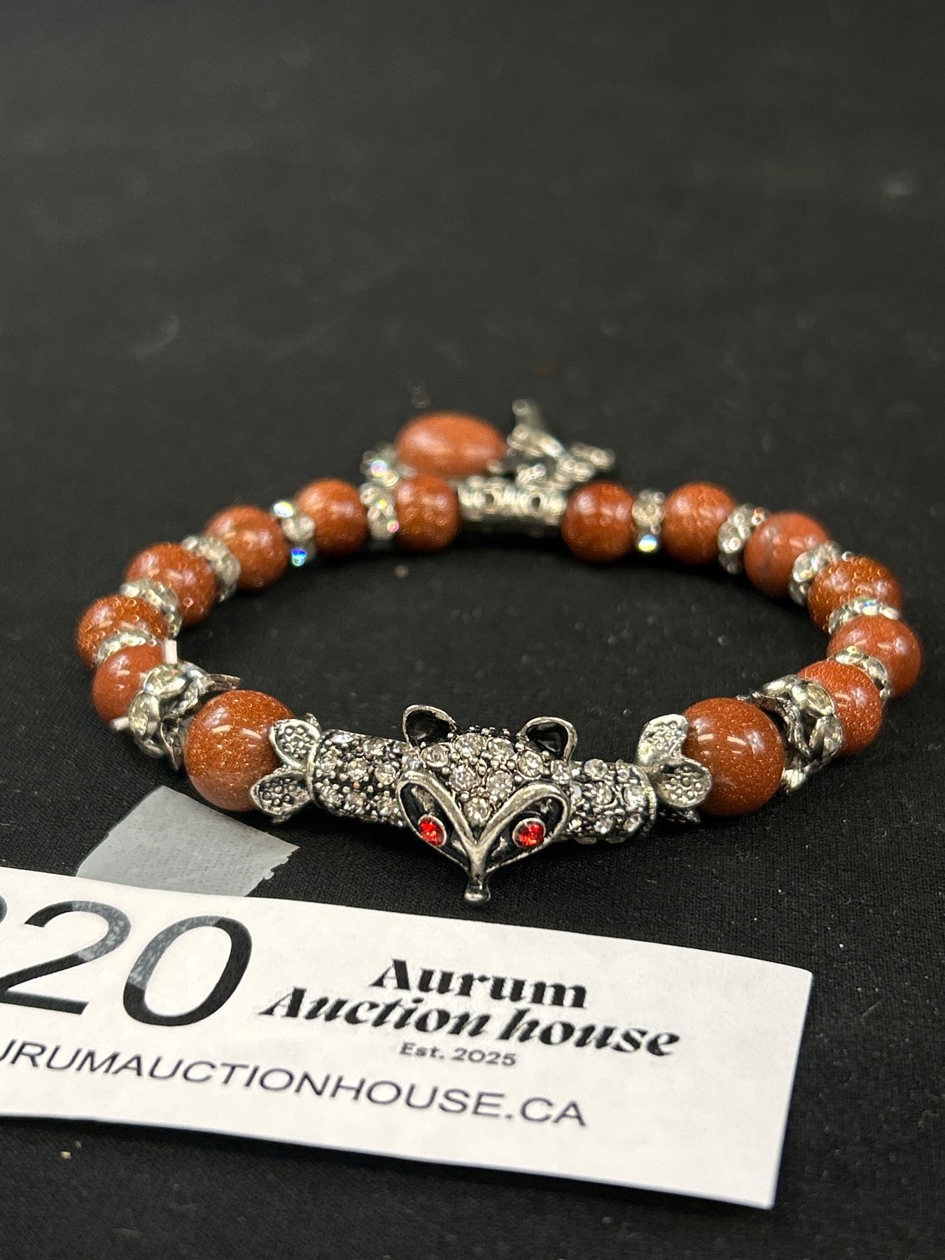 Vintage Goldtone Gem Stretch Bracelet Fairy + Fox Motif