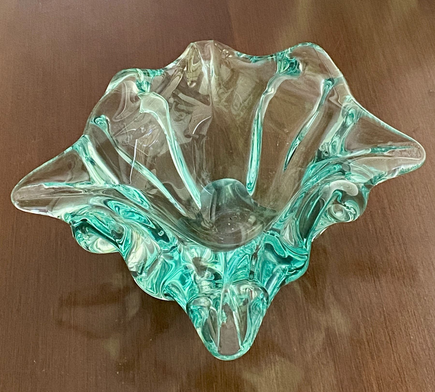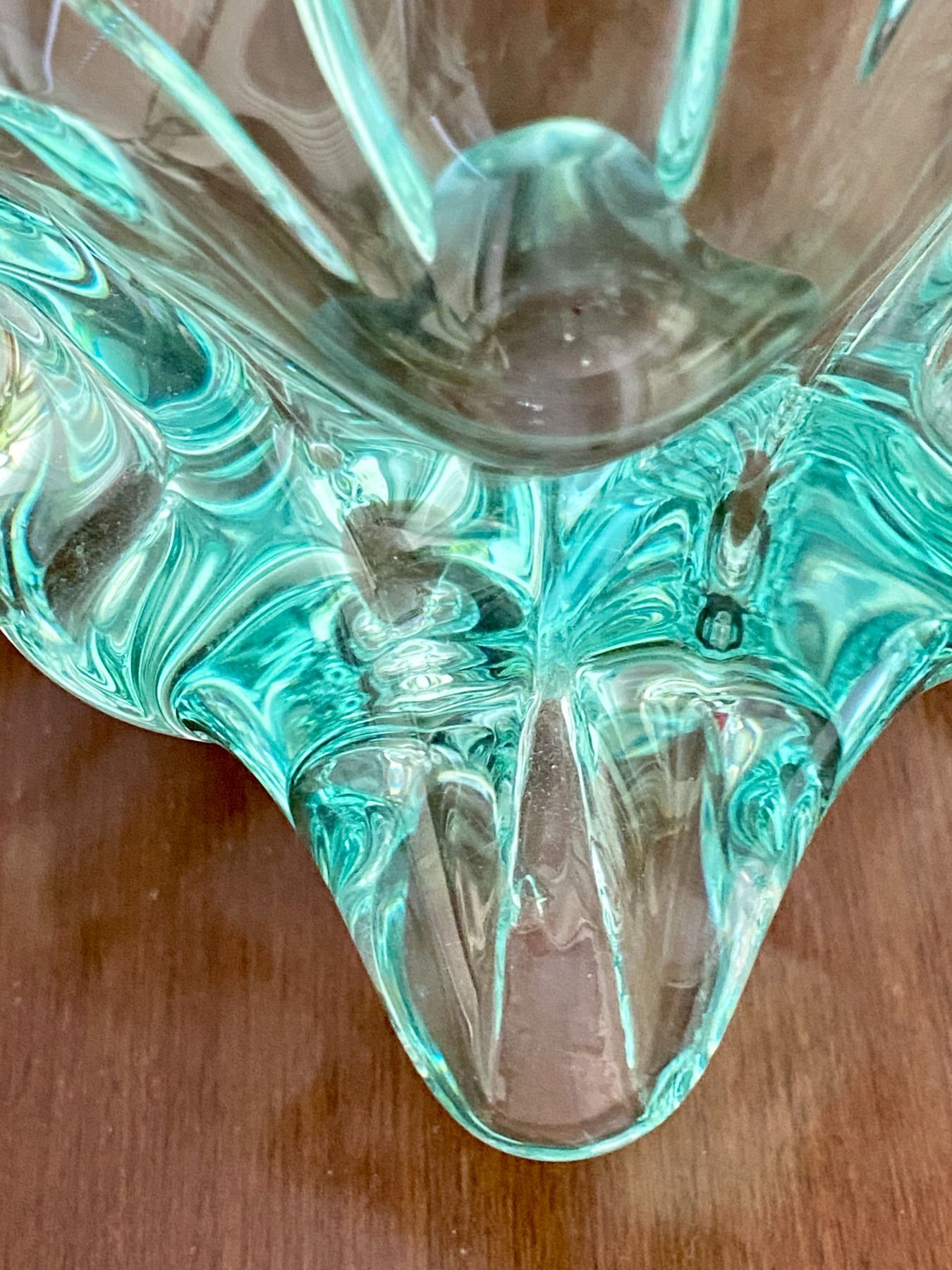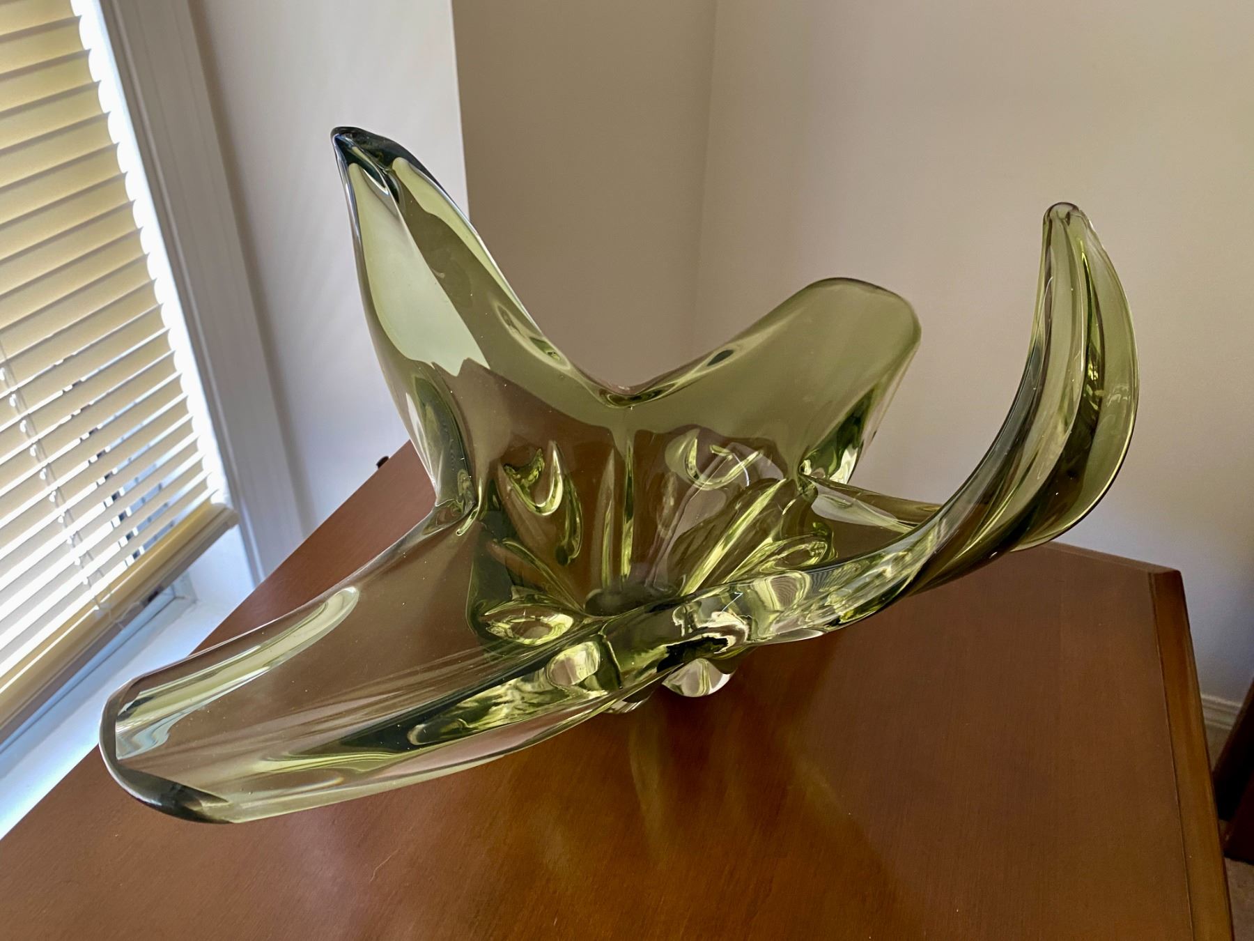 2 pieces of vintage green glass art bowls. Largest is 18x13x9.5".