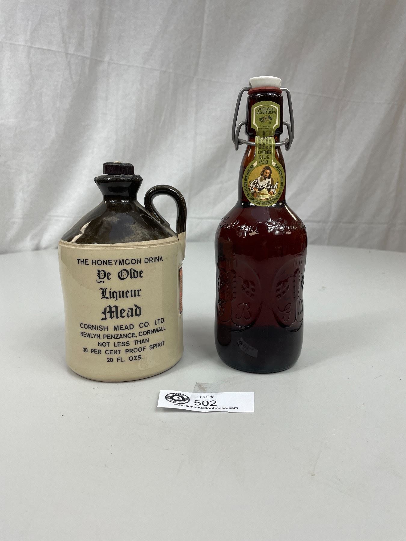 Vintage Grolsch Ful Embossed Beer Bottle +The Honeymoon Drink De Olde Liqour Mead