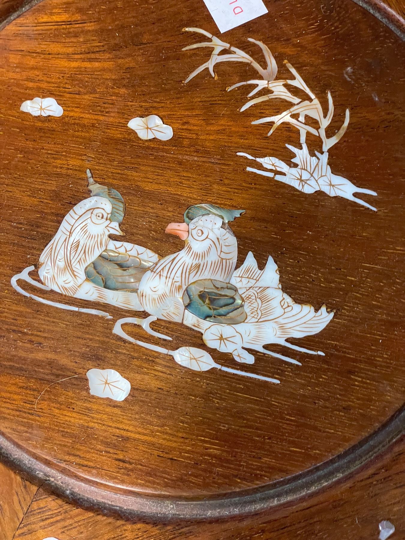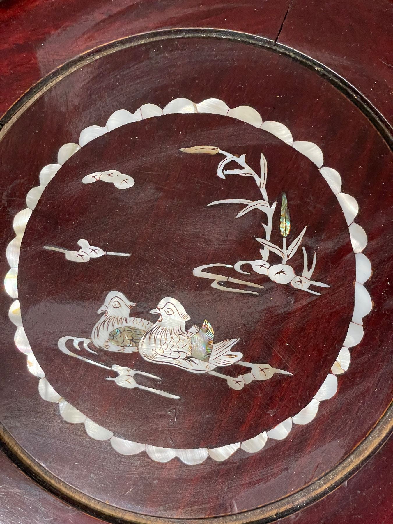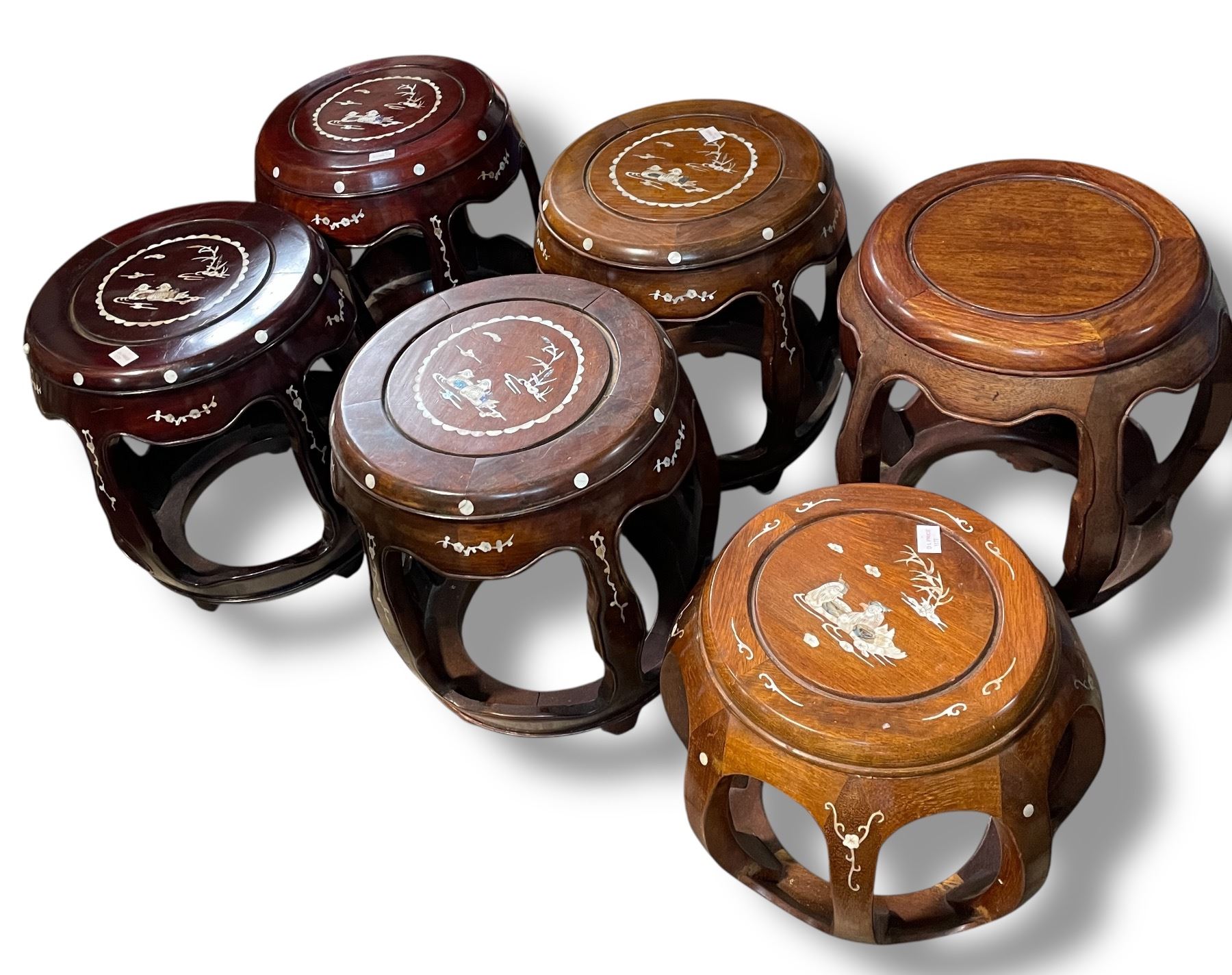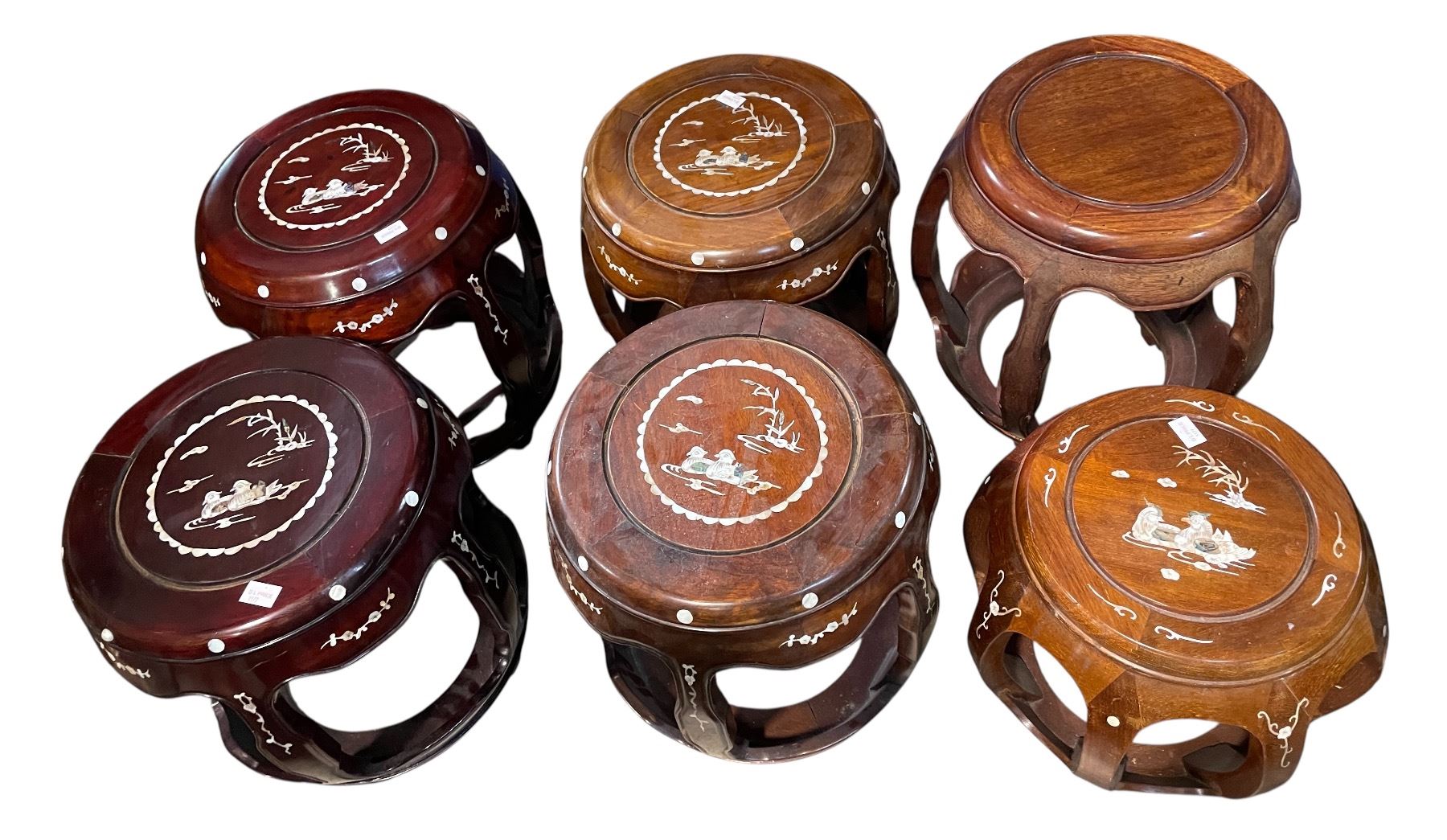 Vintage Group of 6 Chinese Inlaid Round Wood Drum Side Tables