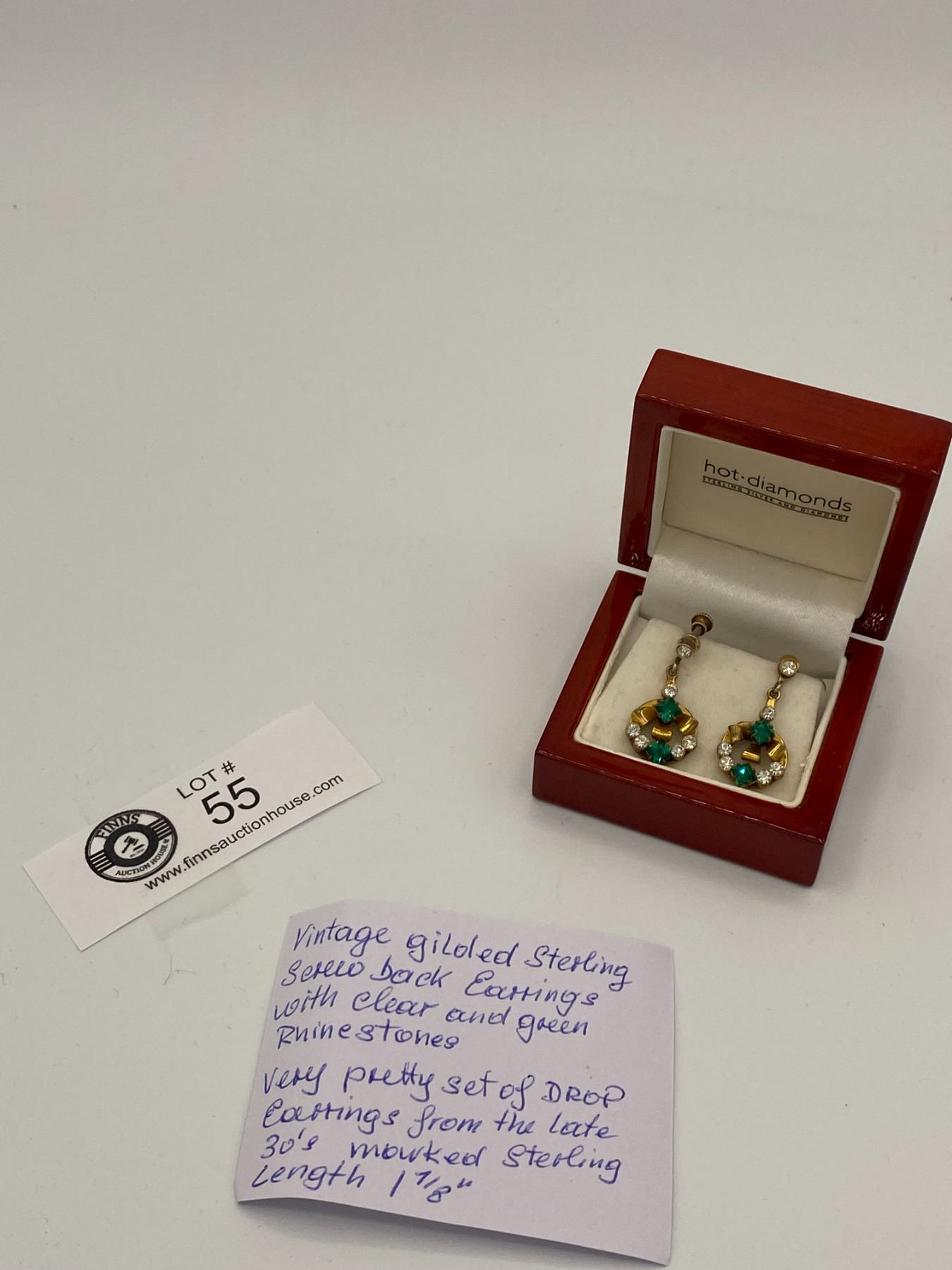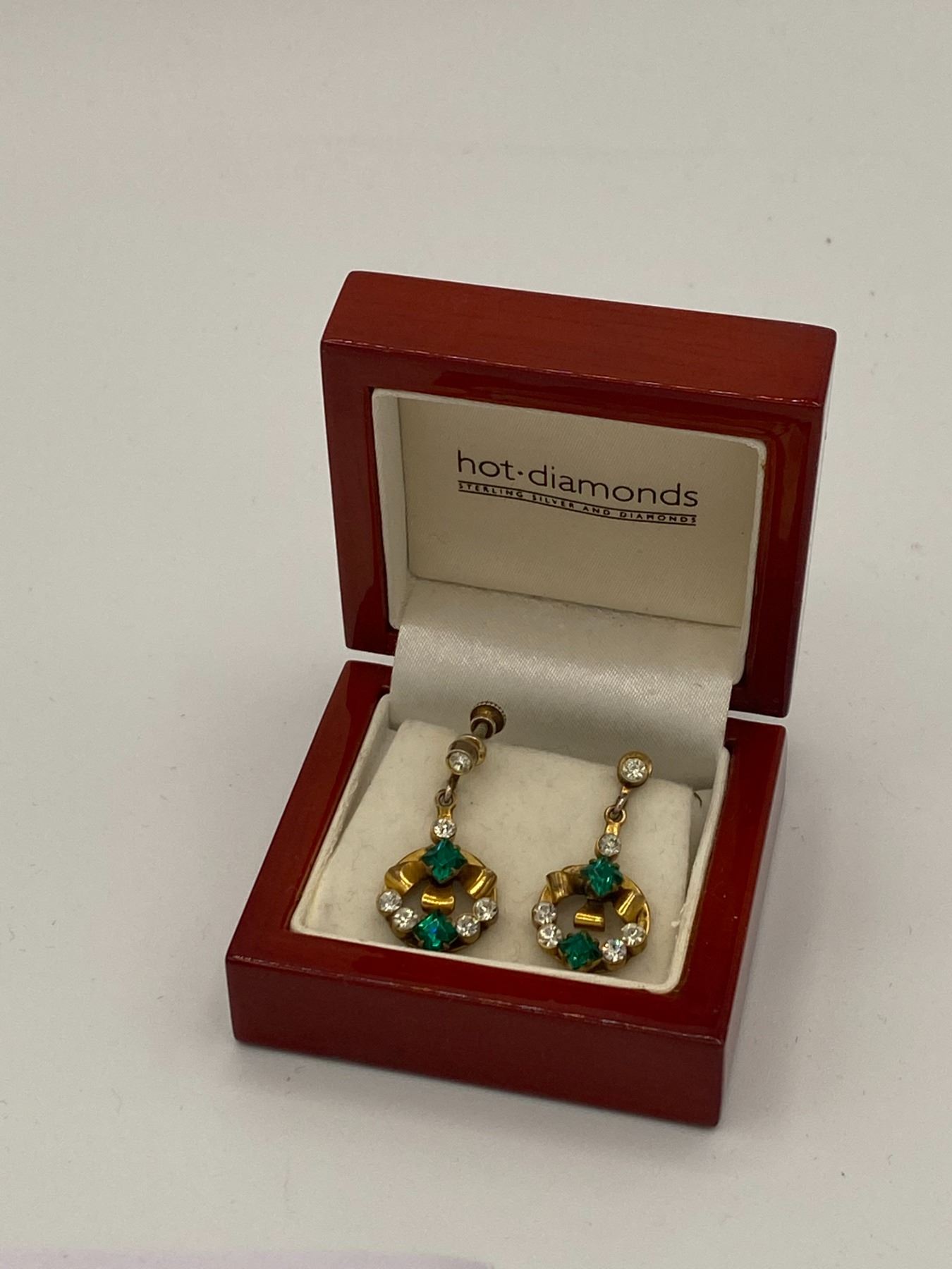 Vintage Guilded Sterling Silver Screwback Earrings with Clear and Green Rhinestones