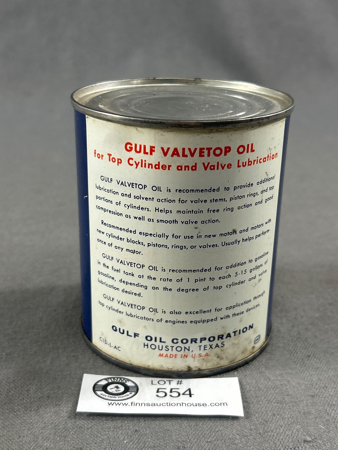 Vintage Gulf Valvetop Oil One Pint Tin. Empty