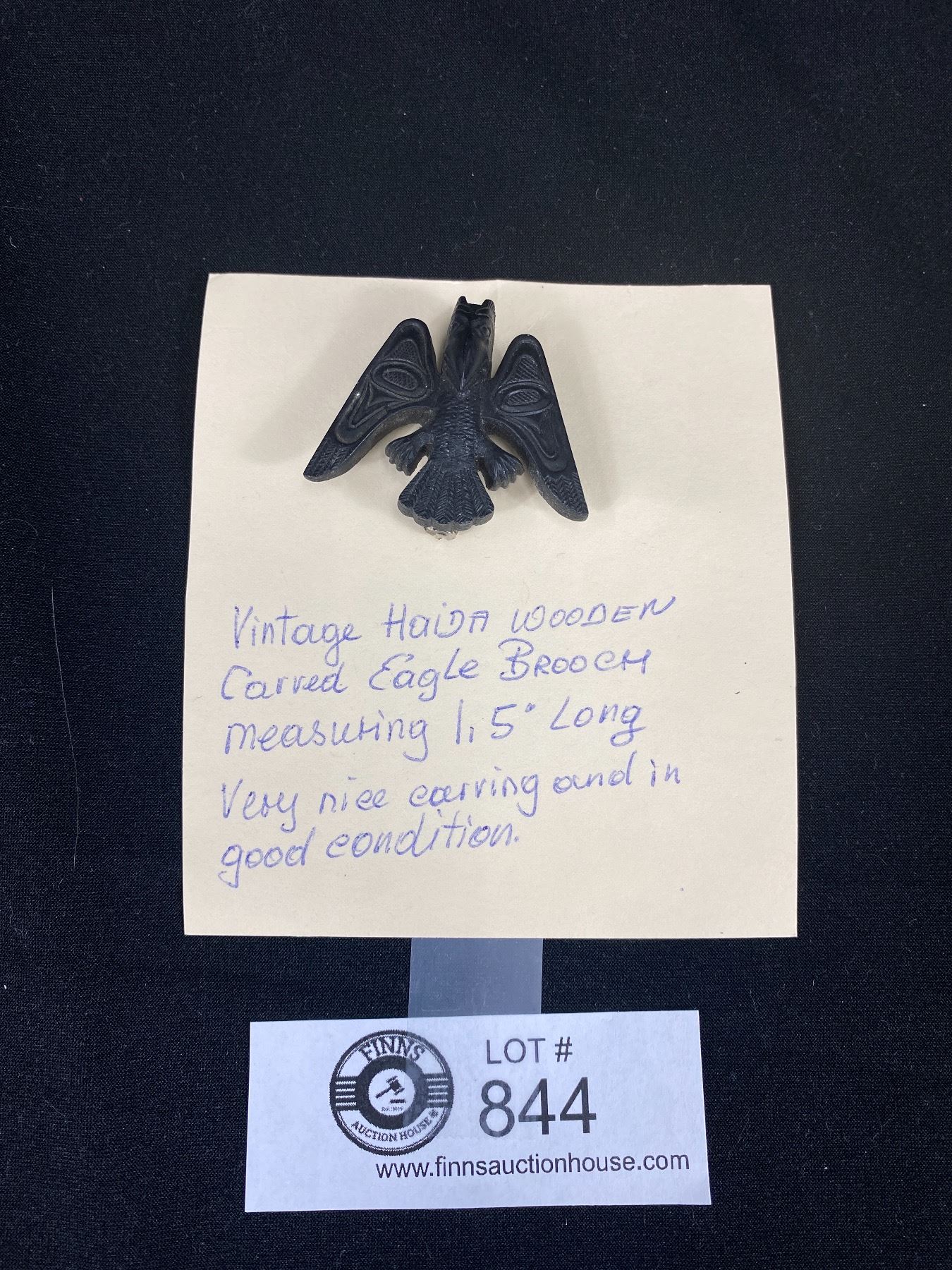 Vintage Haida Wooden Carved eagle Brooch Good Condition 1.5" Length