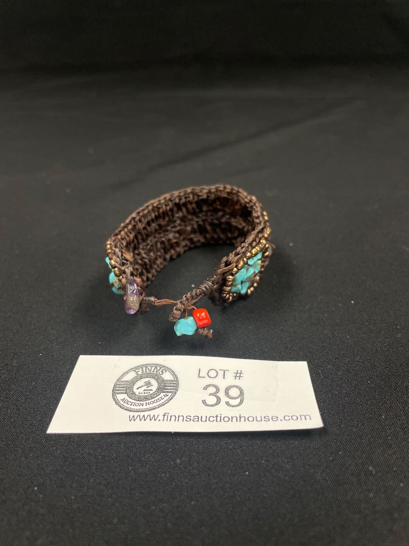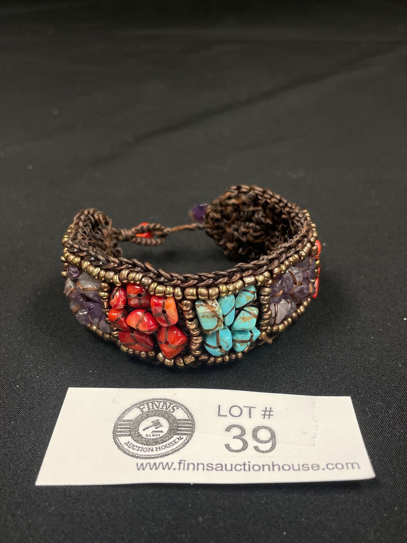 Vintage Hancrafted with Natural Blue and Red Coral & Amethyst Stones Bracelet